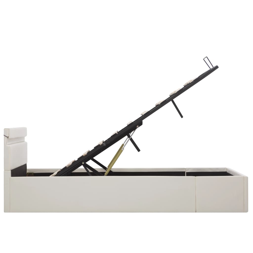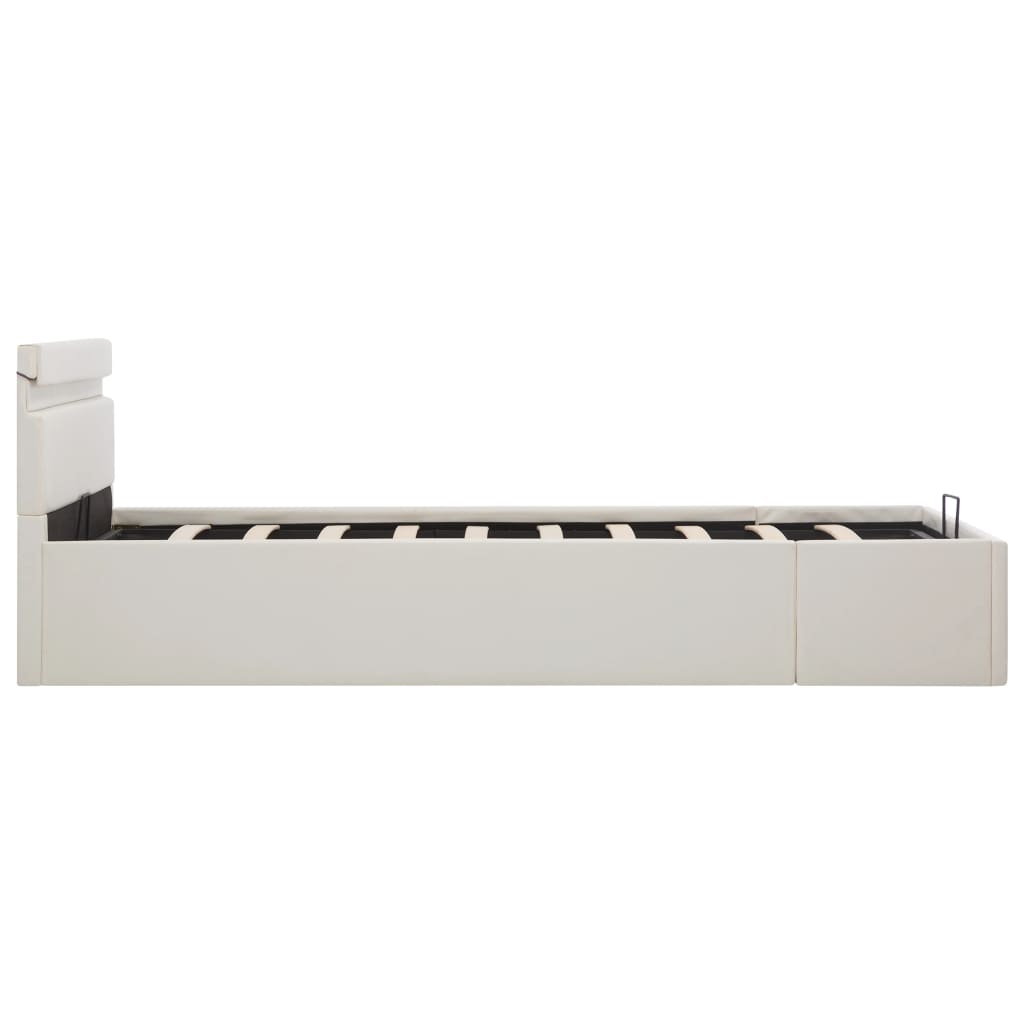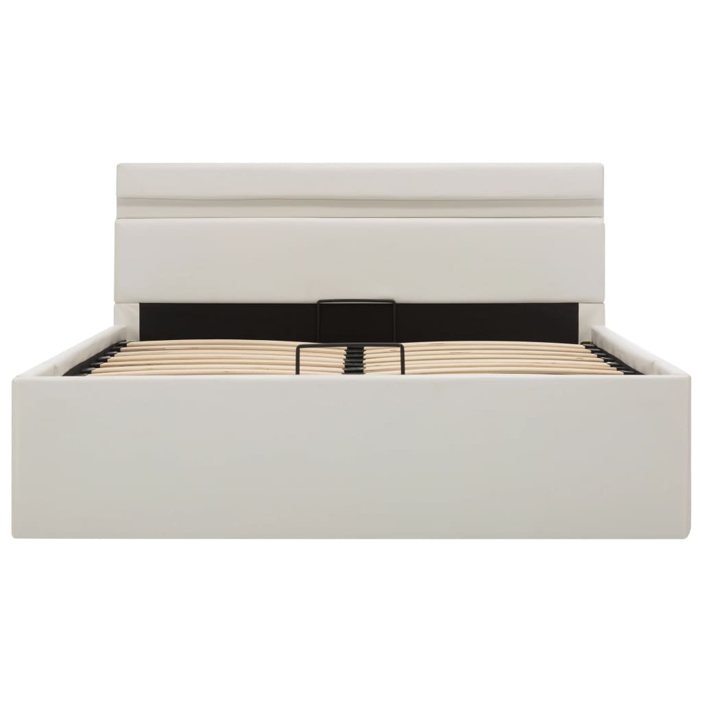 Cadru pat hidraulic ladă cu LED alb 140x200 cm piele ecologică GartenMobel Dekor