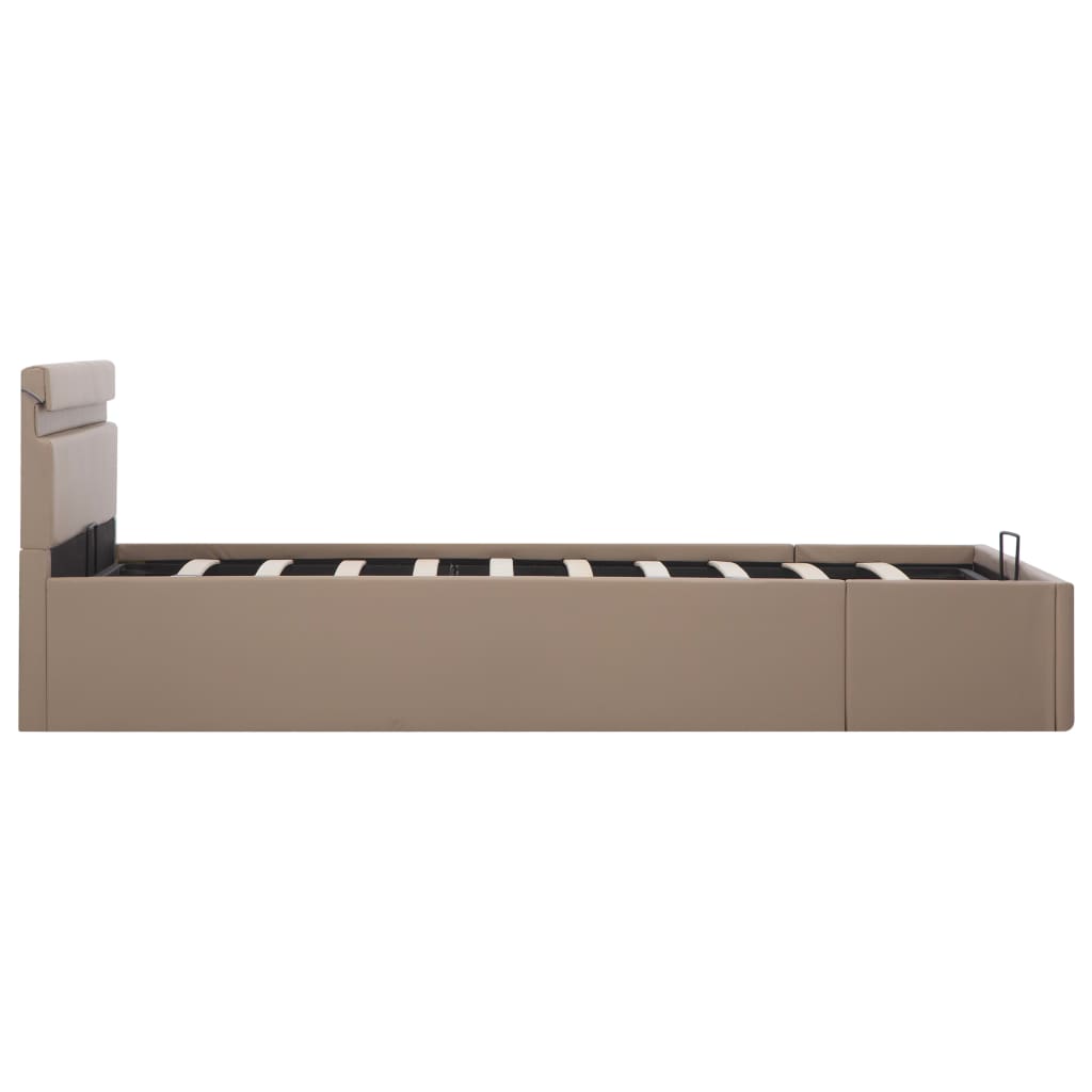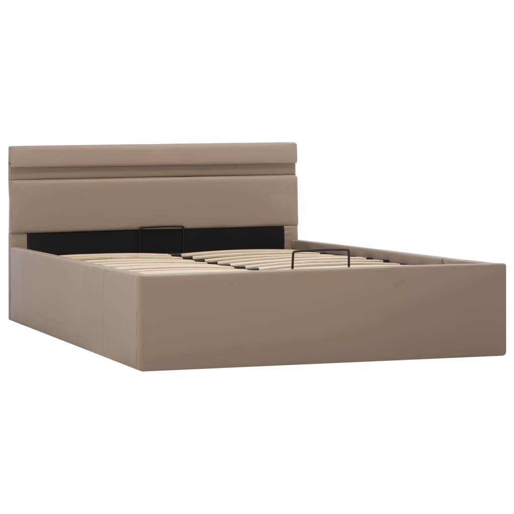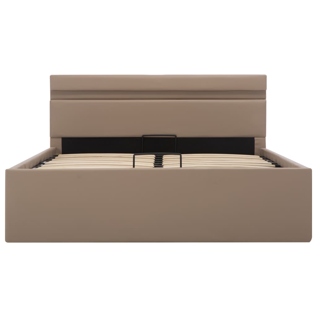 Cadru pat hidraulic ladă LED cappuccino 140 x 200 cm piele eco GartenMobel Dekor