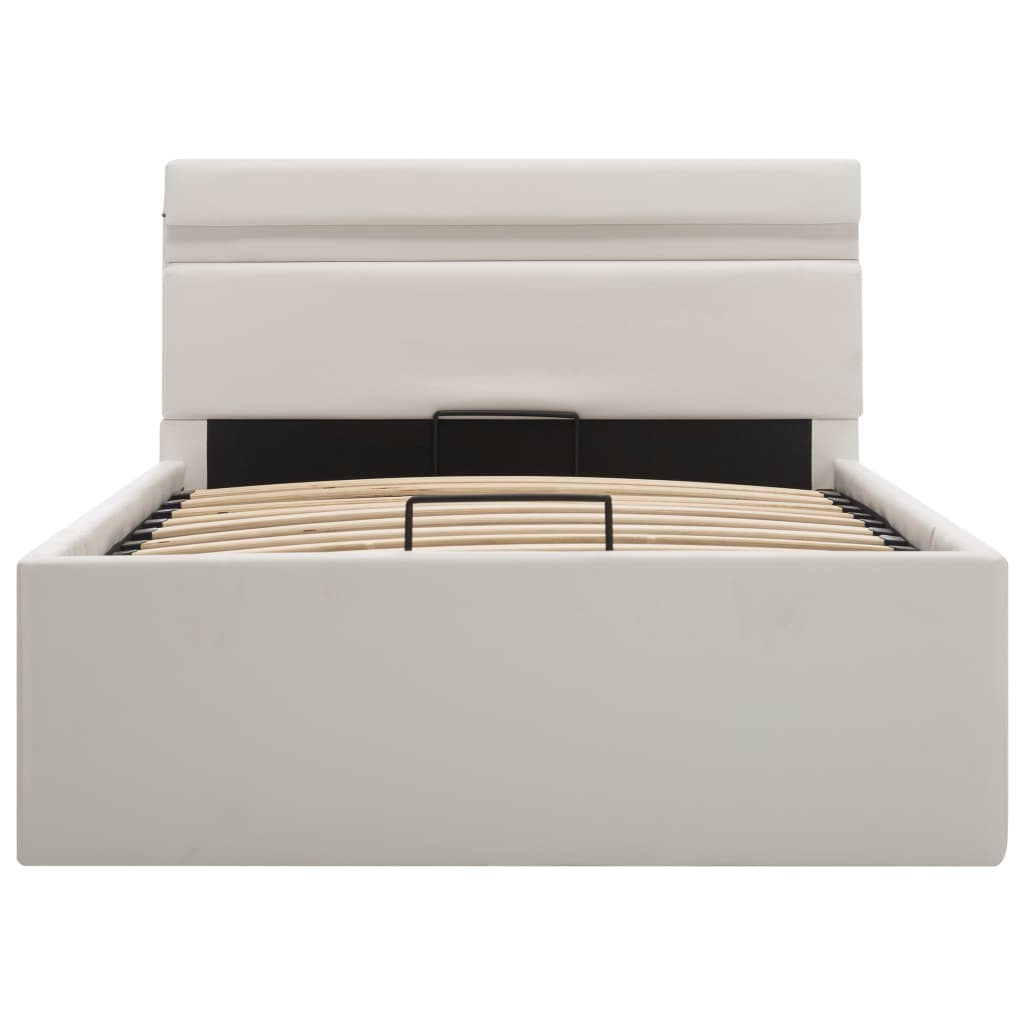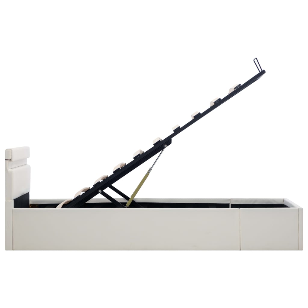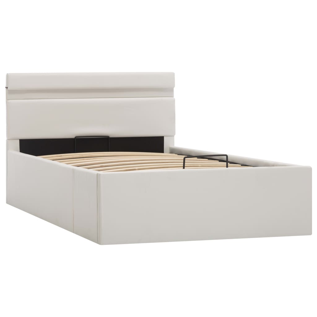 Cadru pat hidraulic ladă și LED alb 100x200 cm piele ecologică GartenMobel Dekor