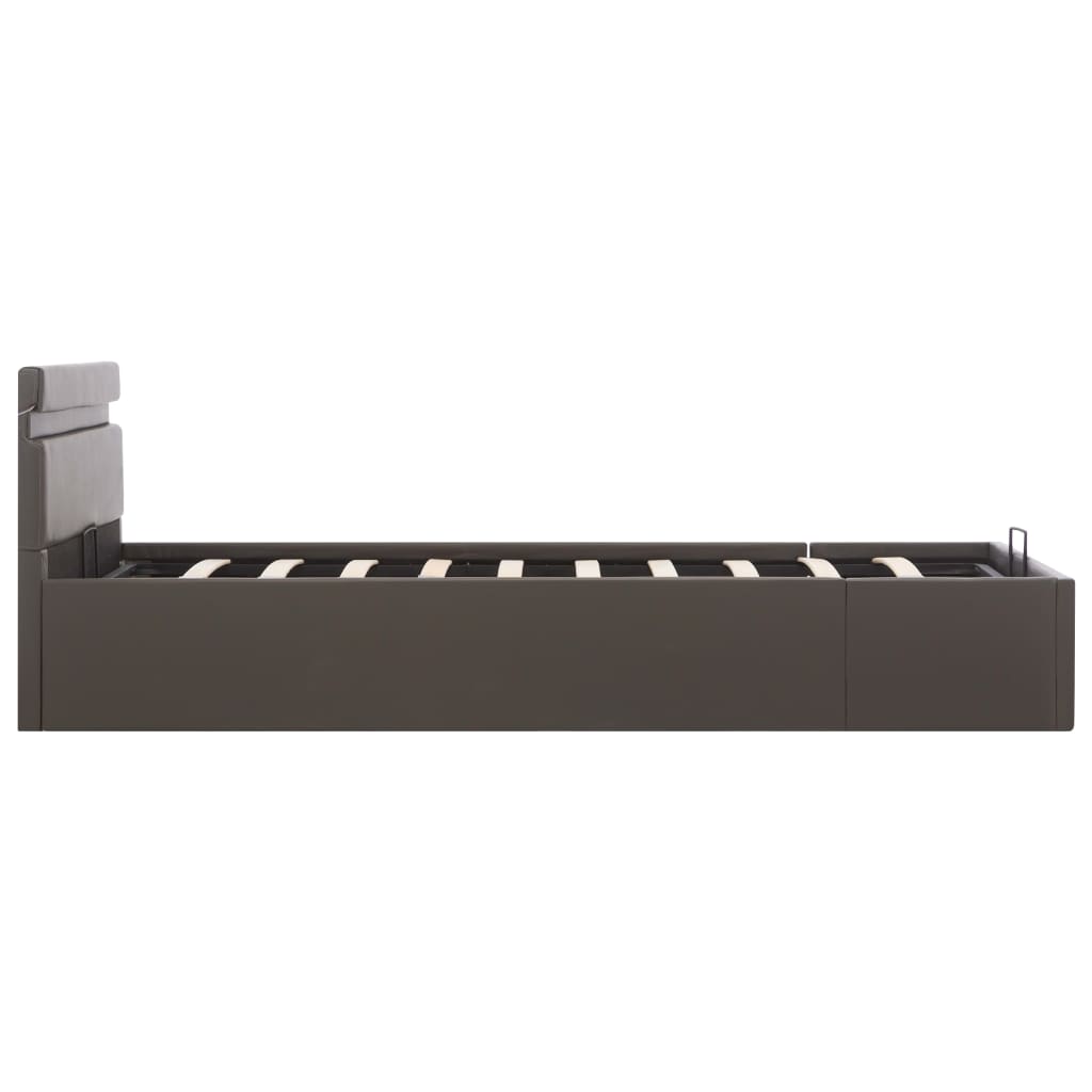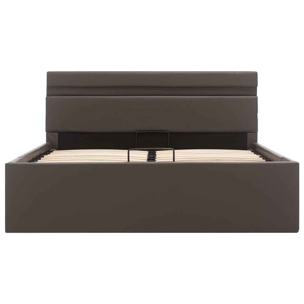 Cadru pat hidraulic ladă și LED gri 140x200 cm piele ecologică GartenMobel Dekor
