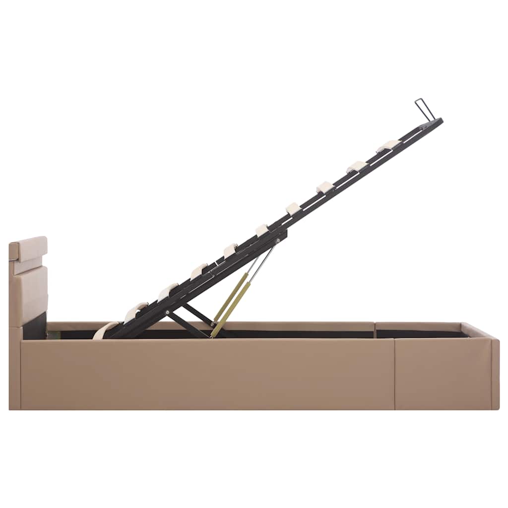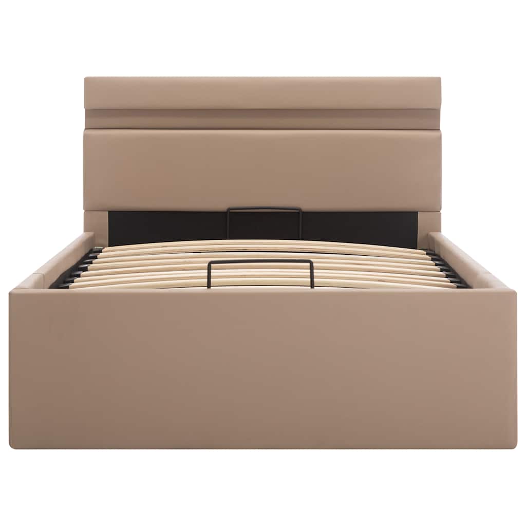 Cadru pat hidraulic LED cappuccino 90x200 cm piele ecologică GartenMobel Dekor
