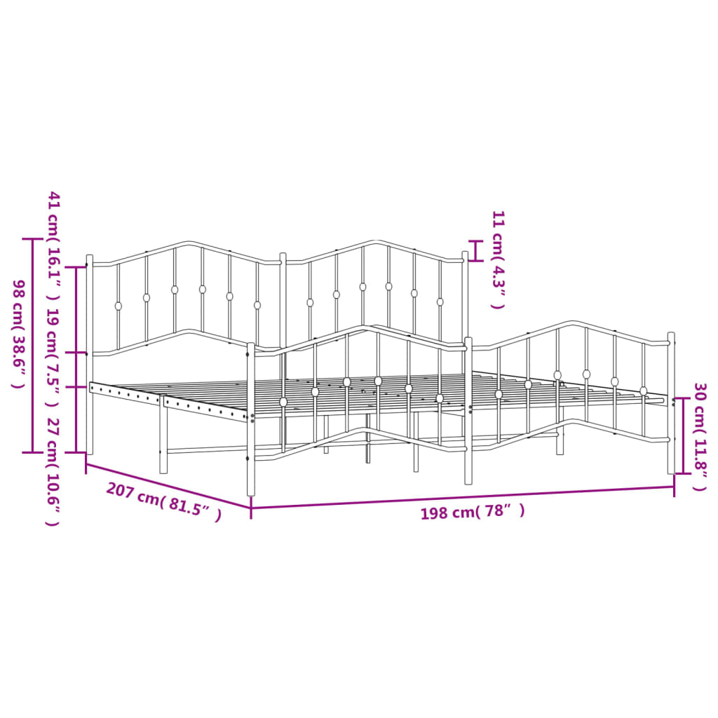 Cadru pat metalic cu tăblie de cap/picioare , alb, 193x203 cm GartenMobel Dekor