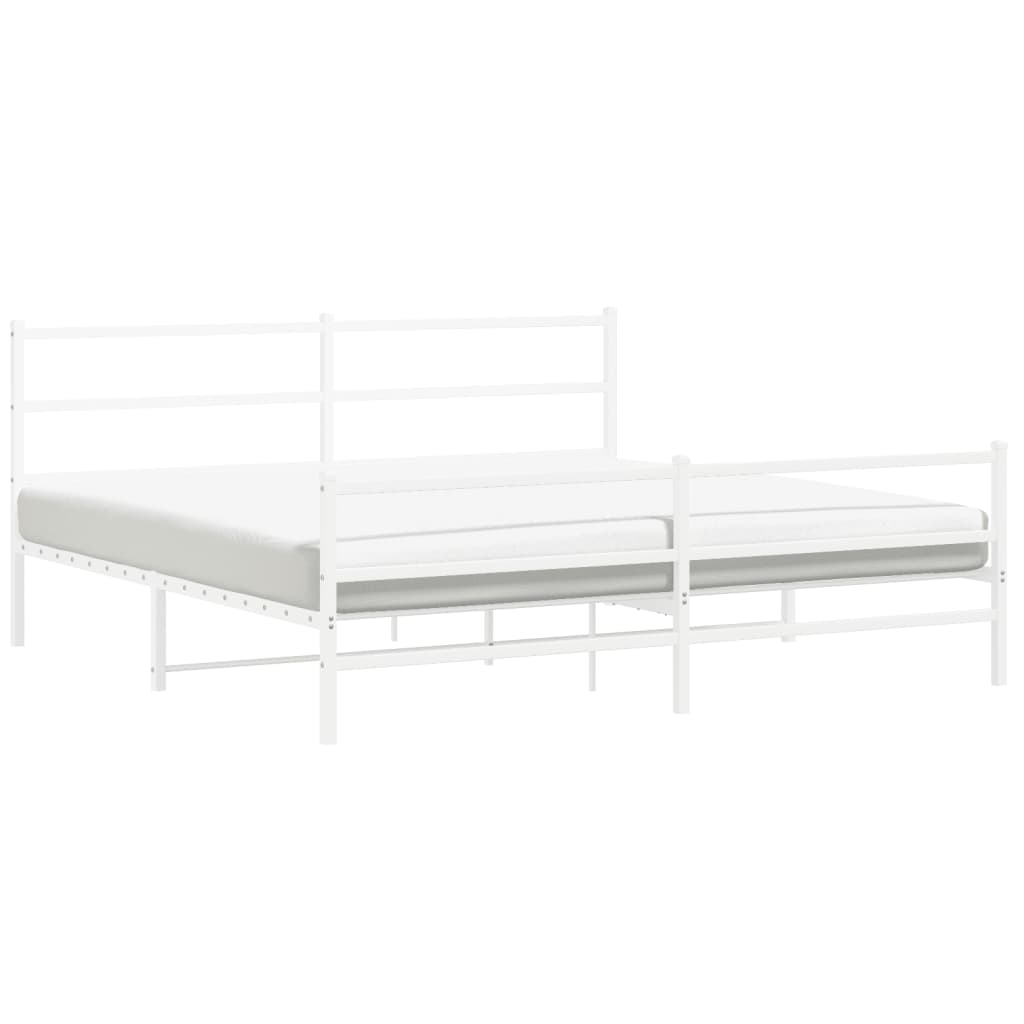 Cadru pat metalic cu tăblie de cap/picioare , alb, 200x200 cm GartenMobel Dekor