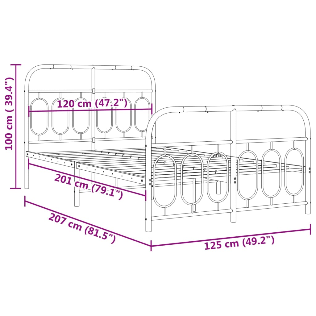 Cadru pat metalic cu tăblie de cap/picioare, negru, 120x200 cm GartenMobel Dekor