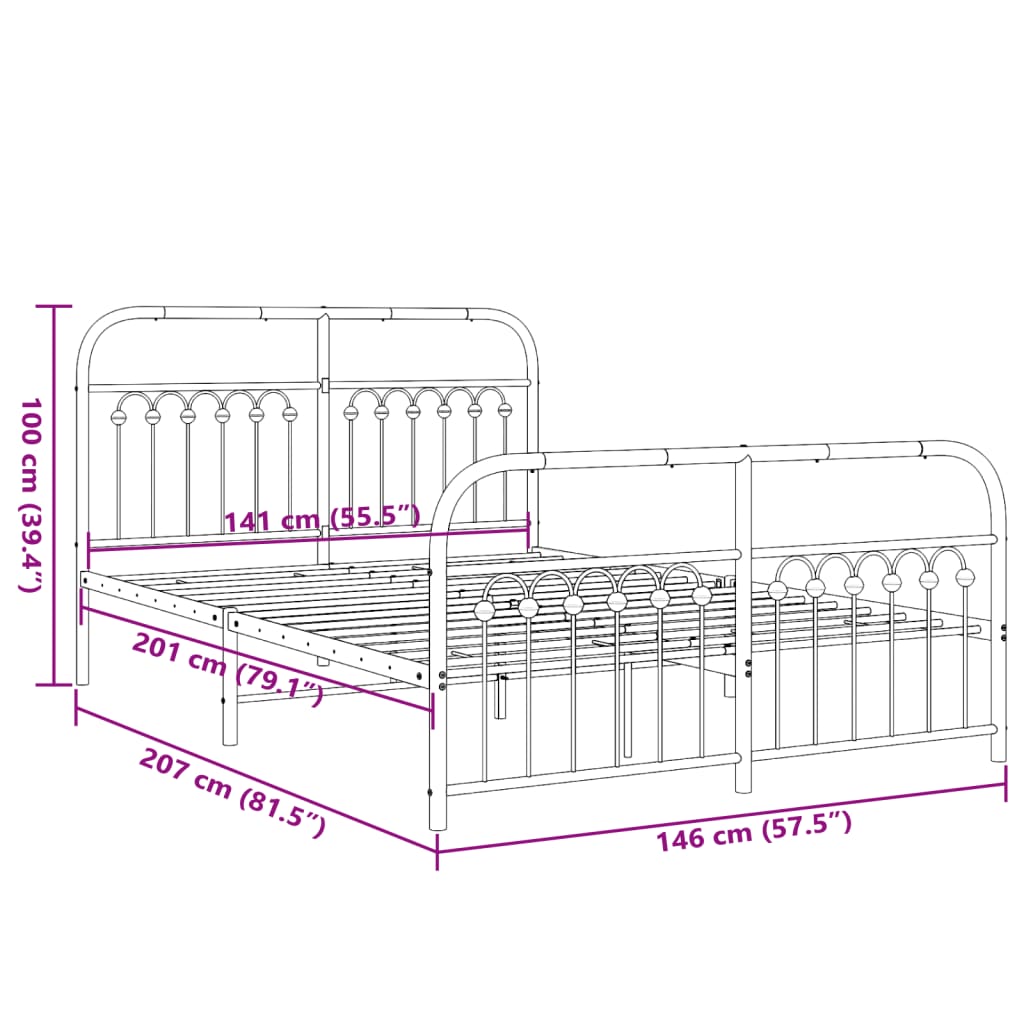 Cadru pat metalic cu tăblie de cap/picioare, negru, 140x200 cm GartenMobel Dekor