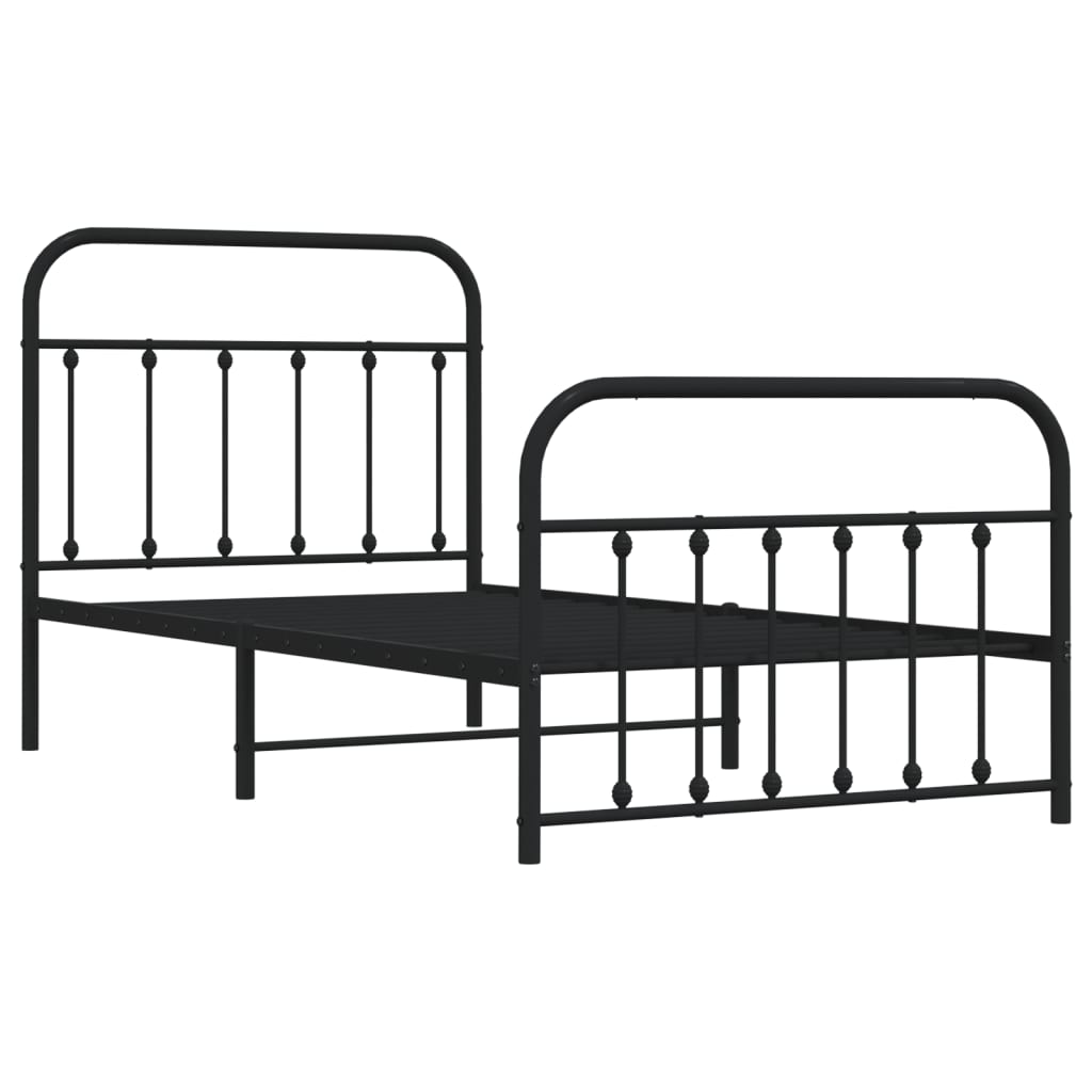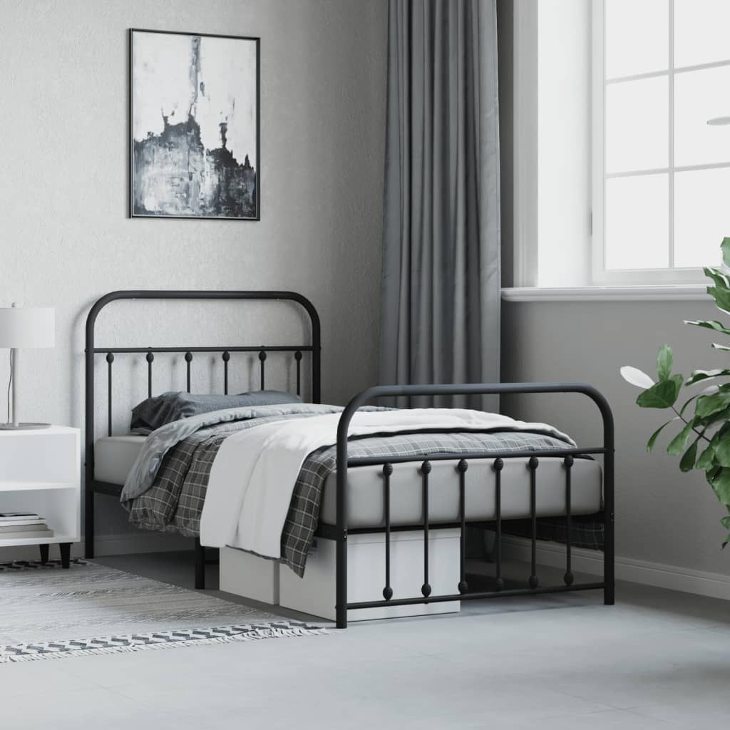 Cadru pat metalic cu tăblii de cap/picioare, negru, 100x190 cm GartenMobel Dekor