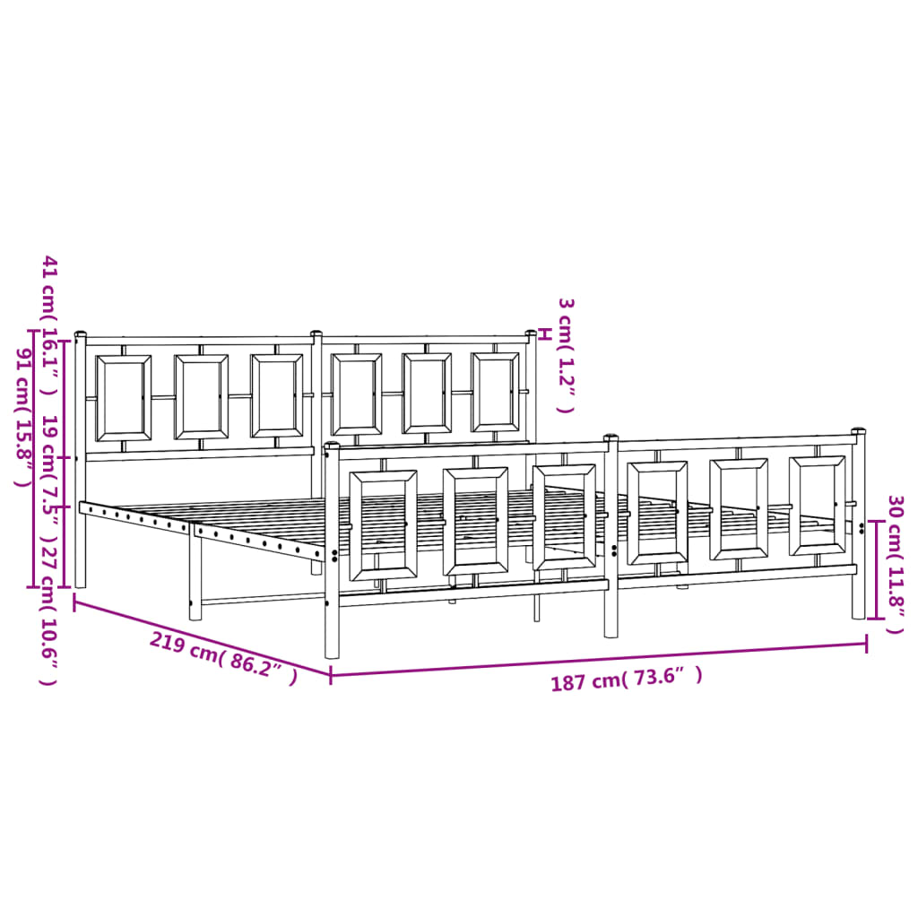 Cadru pat metalic cu tăblii de cap/picioare, negru, 183x213 cm GartenMobel Dekor