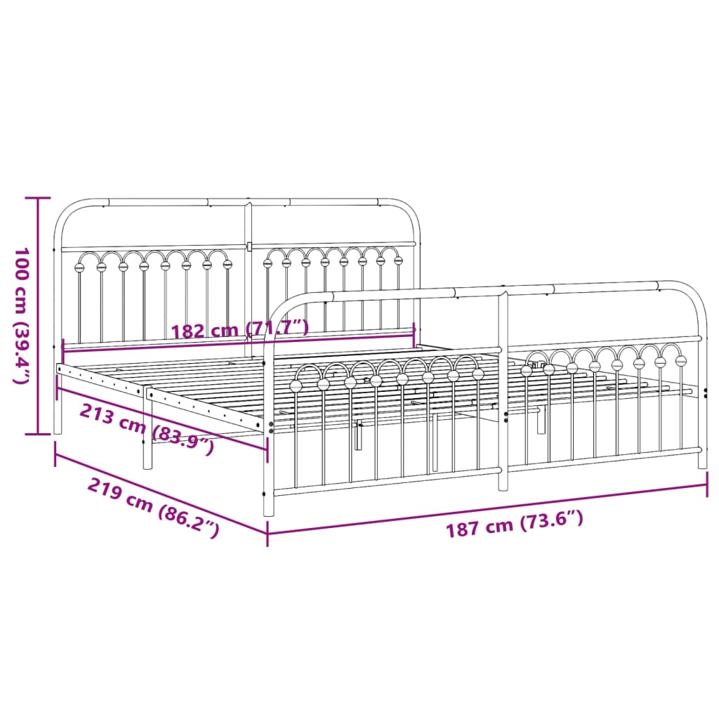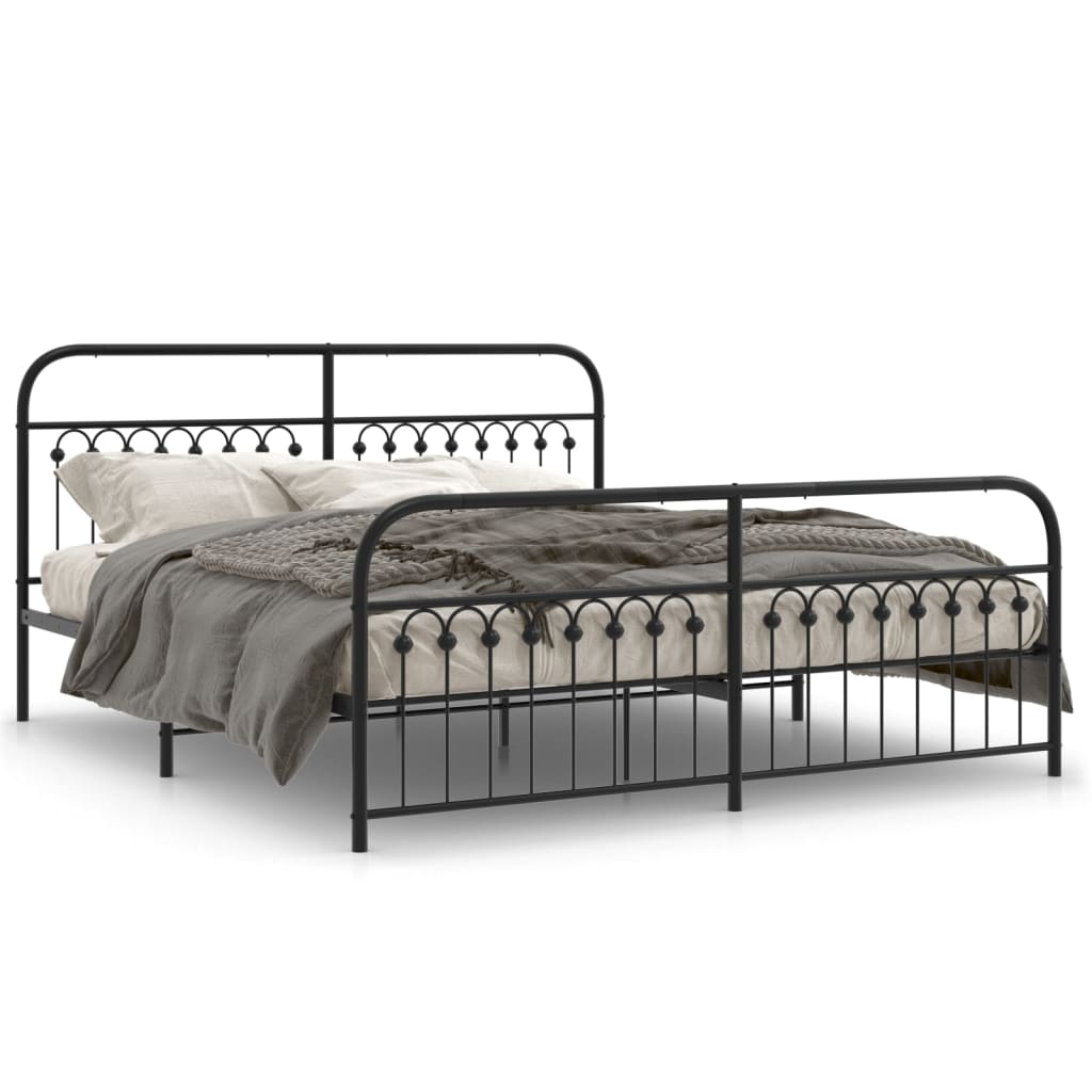 Cadru pat metalic cu tăblii de cap/picioare, negru, 183x213 cm GartenMobel Dekor