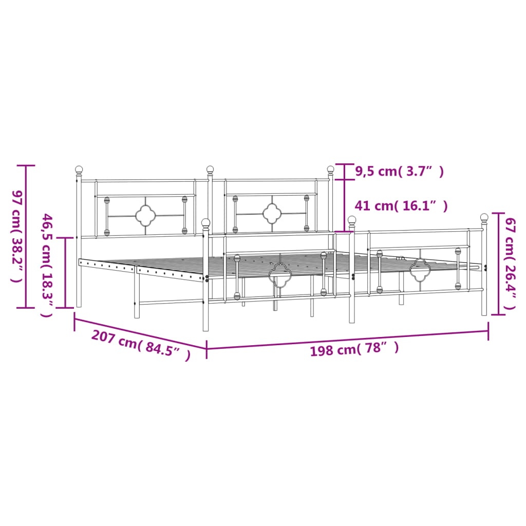 Cadru pat metalic cu tăblii de cap/picioare, negru, 193x203 cm GartenMobel Dekor