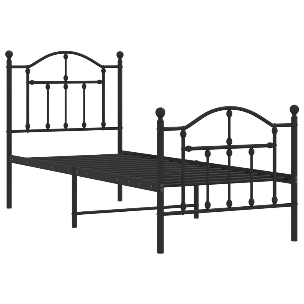 Cadru pat metalic cu tăblii de cap/picioare, negru, 75x190 cm GartenMobel Dekor