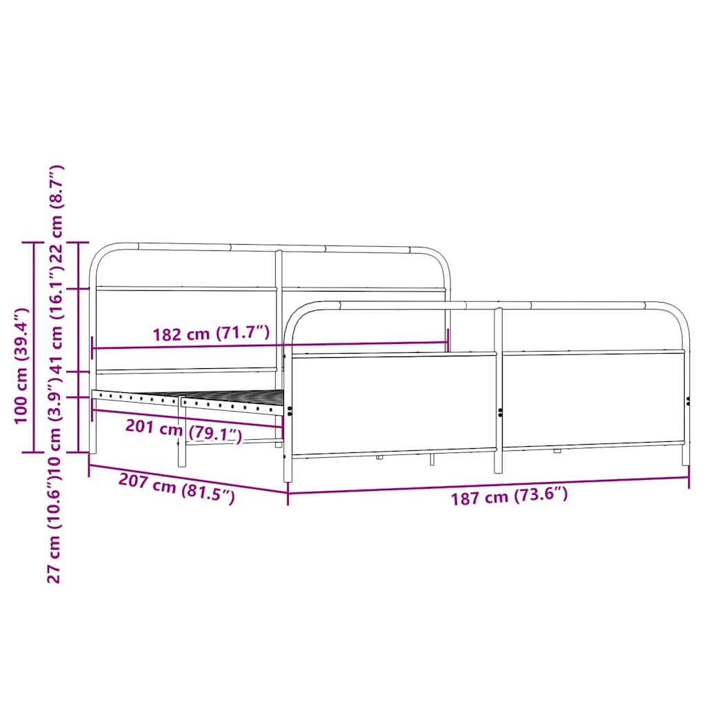Cadru pat metalic fără saltea, stejar fumuriu, 180x200 cm GartenMobel Dekor