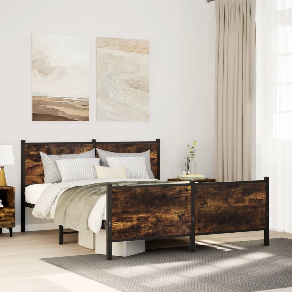 Cadru pat metalic tăblie cap/picioare, stejar fumuriu 137x190cm GartenMobel Dekor