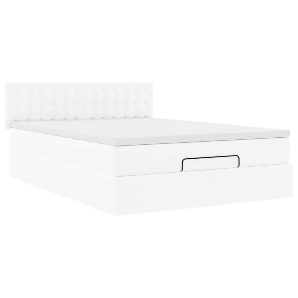 Cadru pat otoman cu saltea alb pur 140x200cm piele artificială GartenMobel Dekor