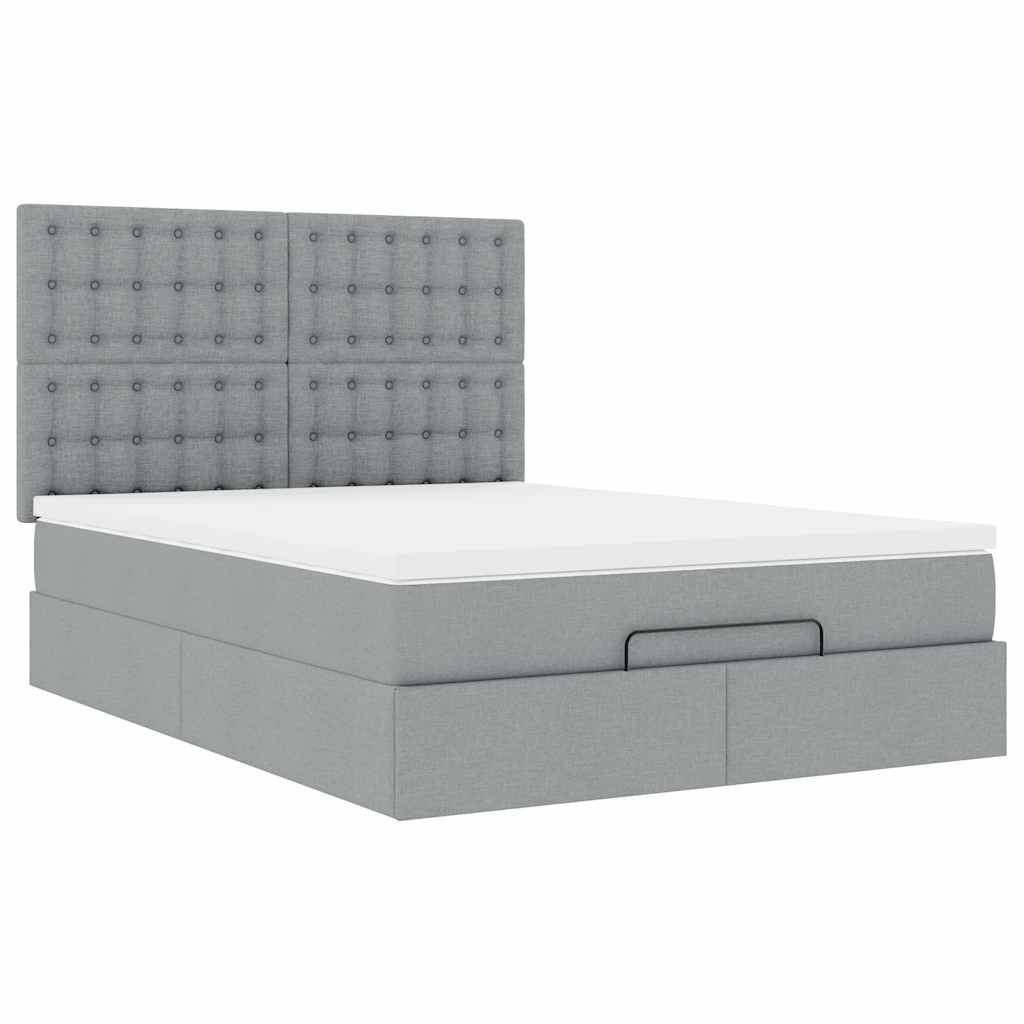Cadru pat otoman cu saltea țesătură gri deschis 140x200cm GartenMobel Dekor