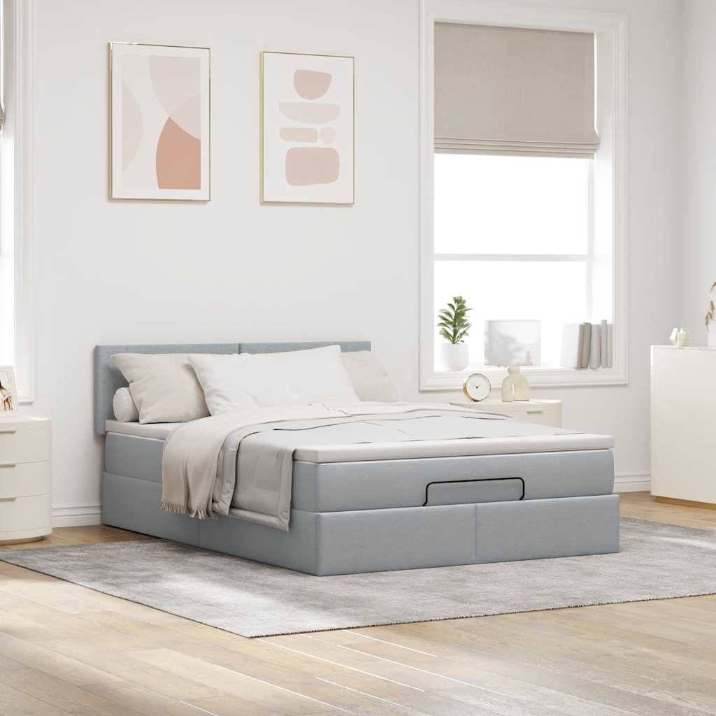 Cadru pat otoman cu saltea țesătură gri deschis 140x200cm GartenMobel Dekor