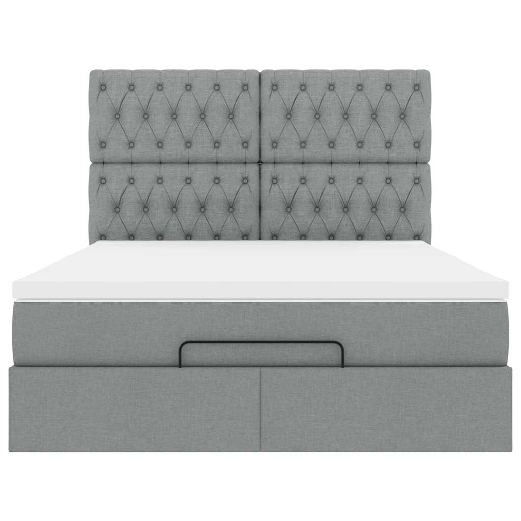 Cadru pat otoman cu saltea țesătură gri deschis 140x200cm GartenMobel Dekor