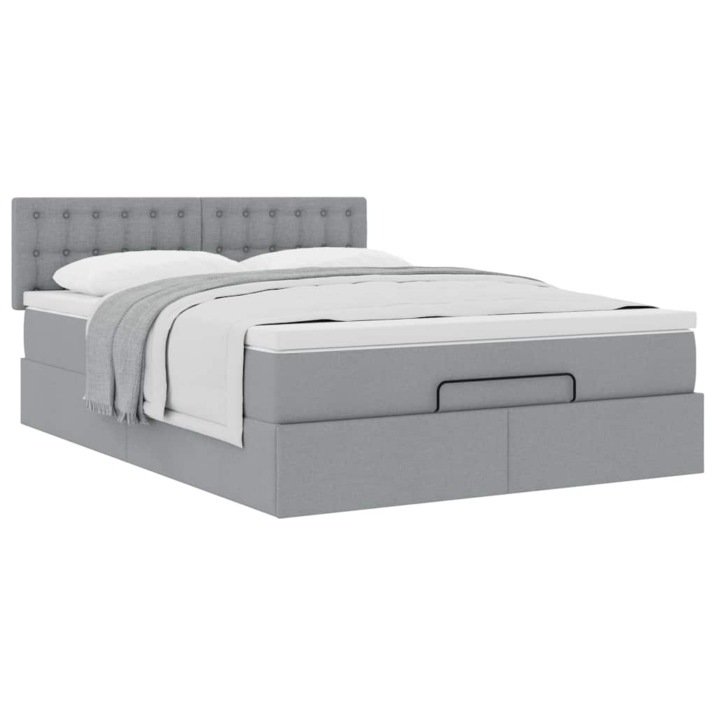 Cadru pat otoman cu saltea țesătură gri deschis 140x200cm GartenMobel Dekor