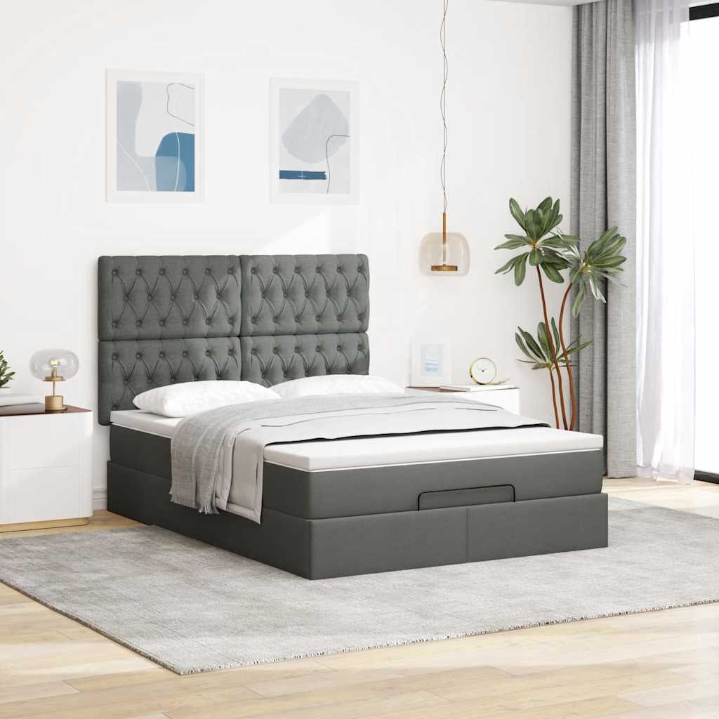 Cadru pat otoman cu saltea țesătură gri închis 140x200 cm GartenMobel Dekor
