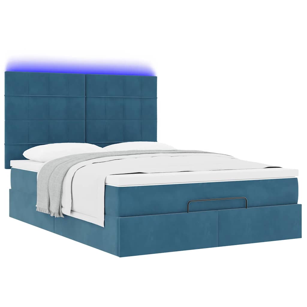 Cadru pat otoman cu saltele Albastru închis 140x190cm catifea GartenMobel Dekor