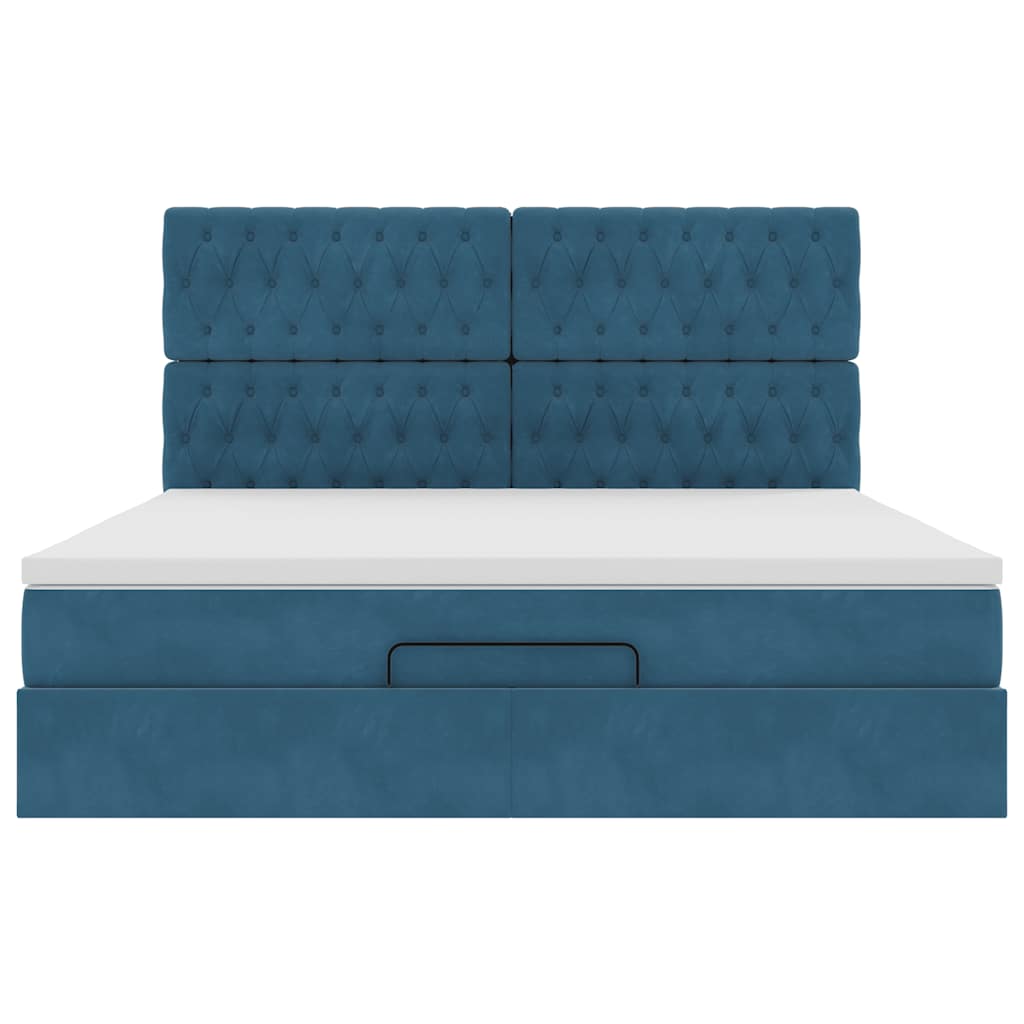 Cadru pat otoman cu saltele Albastru închis 160x200cm catifea GartenMobel Dekor
