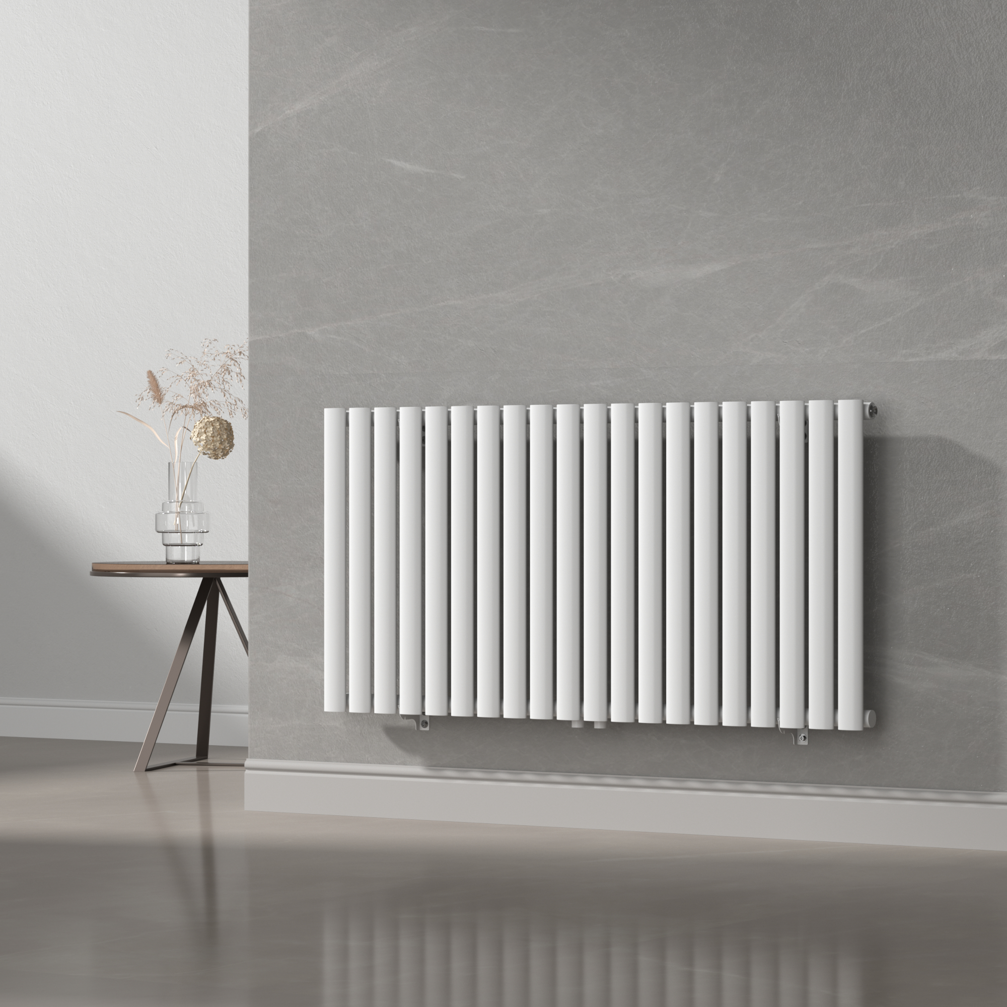 Datorita constructiei plate si dimensiunilor de 60 x 120 cm, acest radiator de perete ajuta la economisirea spatiului, fara sa compromita performanta termica. Puterea de 857W il face potrivit pentru incaperi in care ai nevoie de confort termic constant si integrare vizuala discreta.