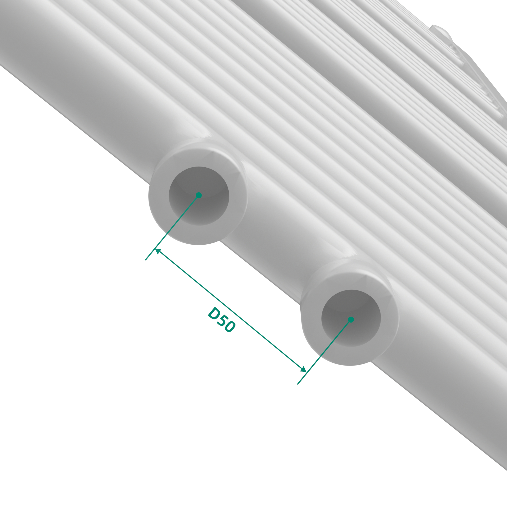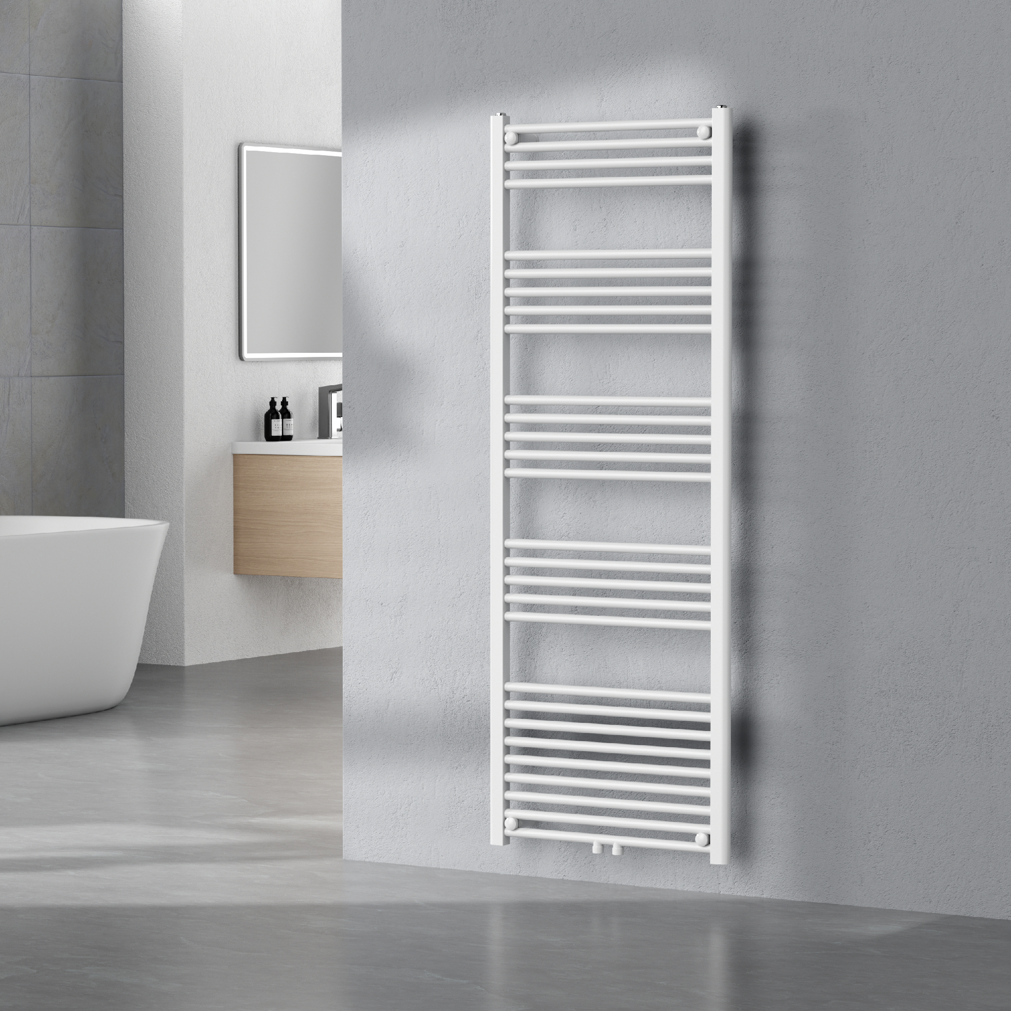Designul său vertical, slim și elegant îl recomandă pentru băi unde spațiul trebuie folosit inteligent. Finisajul alb RAL9016 se integrează ușor în amenajări contemporane, minimaliste sau clasice, oferind un aspect curat și ordonat.
