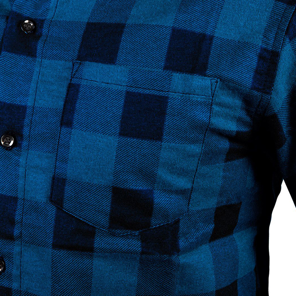 - Camasa multifunctionala moale si confortabila, pe care este imprimat un model in carouri marine si negre.