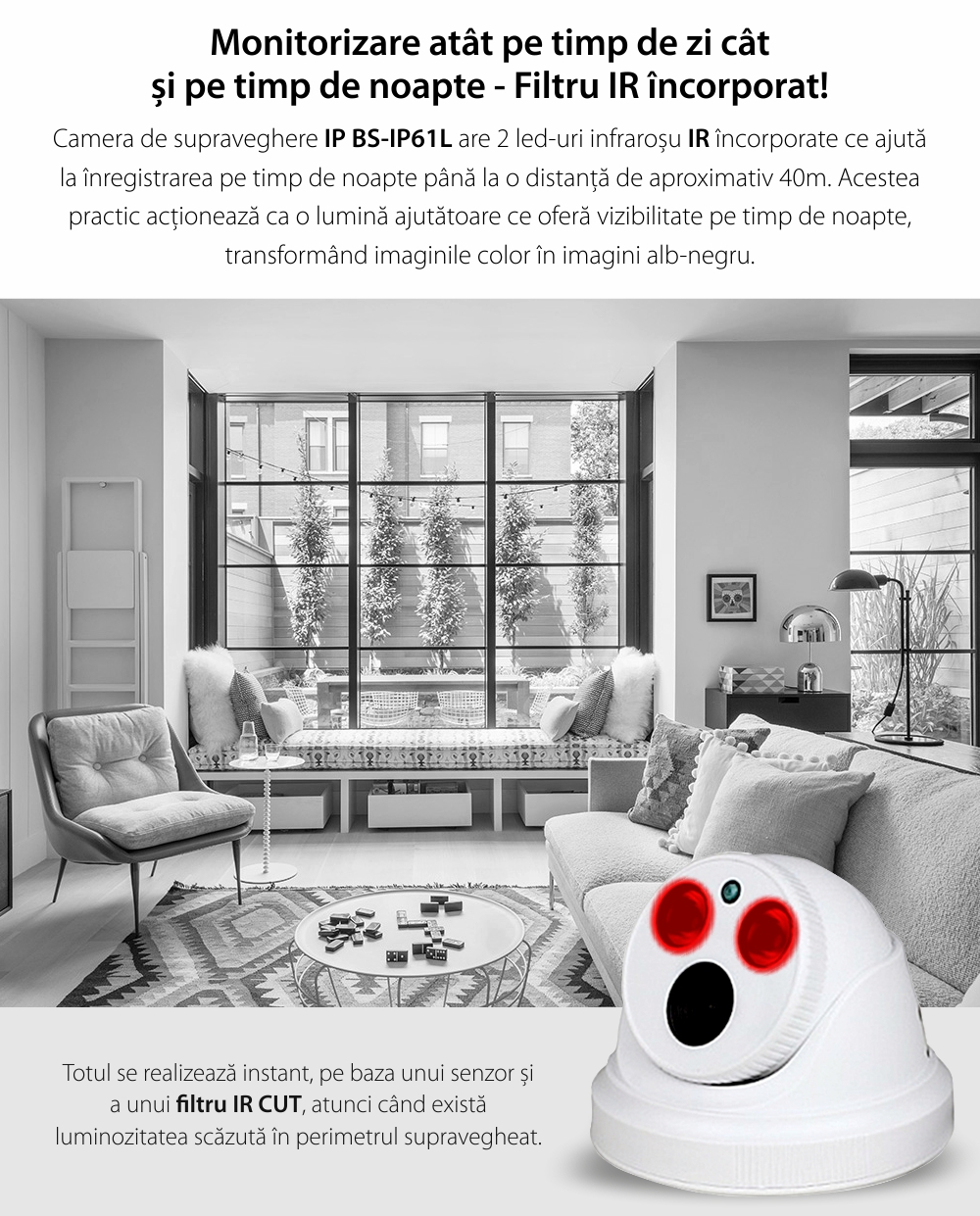 Camera de supraveghere Besnt BS-IP61L, 3MP, HD, Vedere nocturna cu infrarosu SmartElectro IntelligentHouse