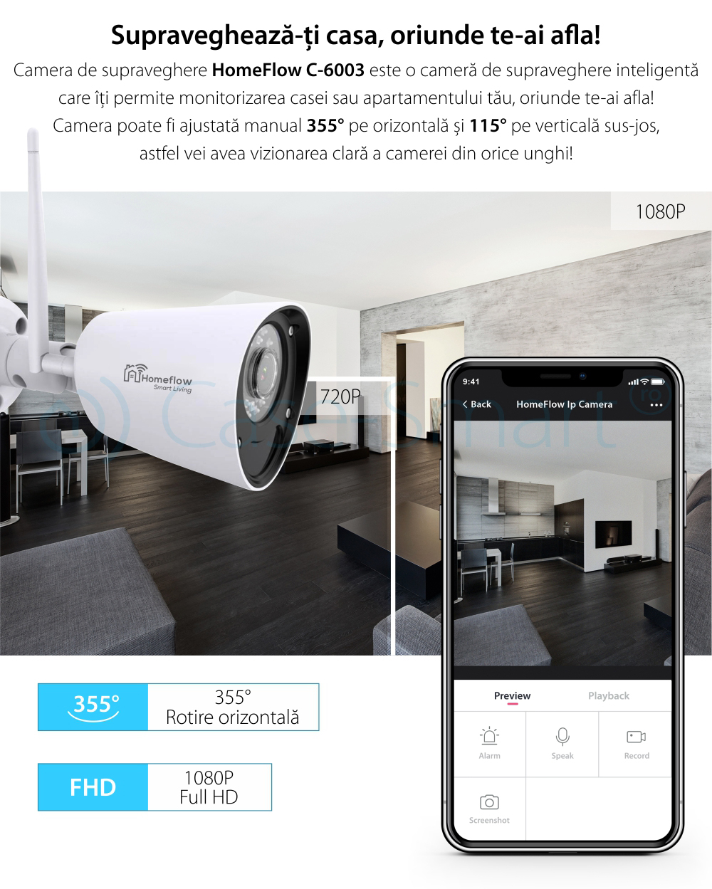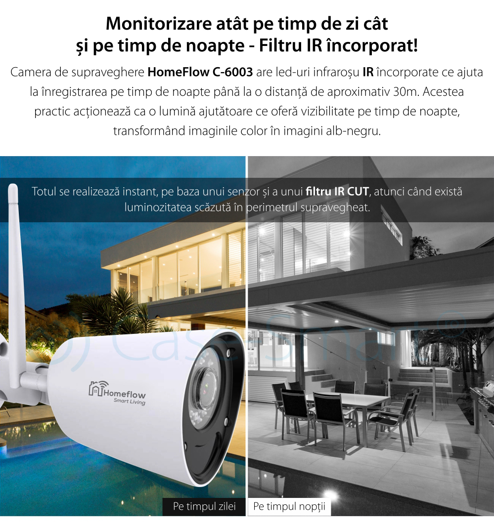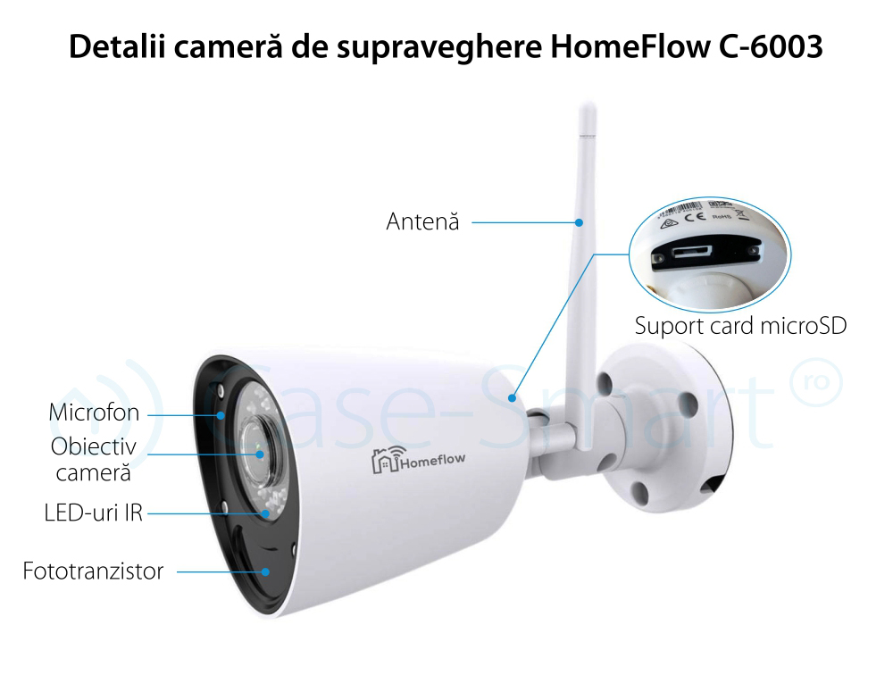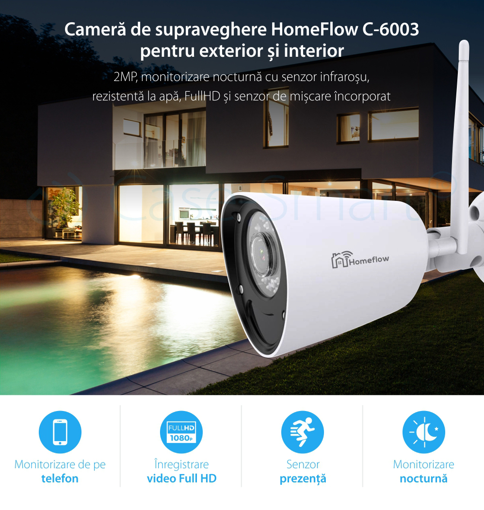 Camera de supraveghere wireless Homeflow C-6003, Exterior, Detectie miscare, Night Vision, Control de pe telefonul mobil SmartElectro IntelligentHouse