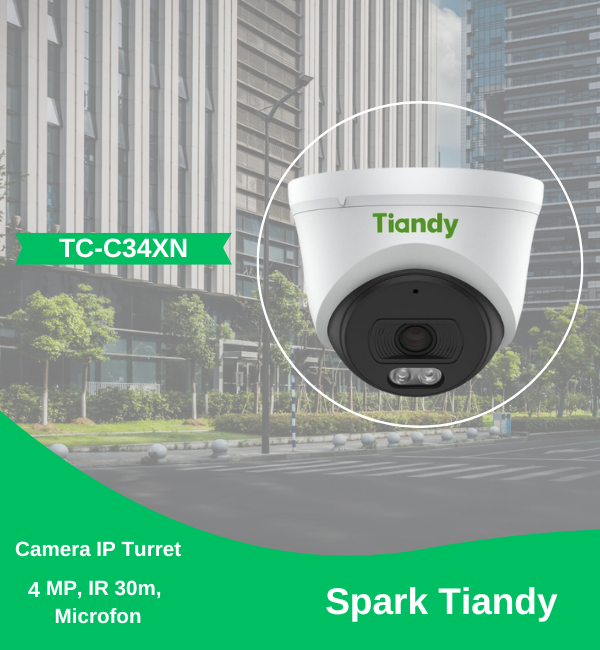 Camera IP Turret, 4MP, lentila 2.8mm, IR 30m, Microfon, PoE - Spark Tiandy TC-C34XN-I3EY-28 SafetyGuard Surveillance