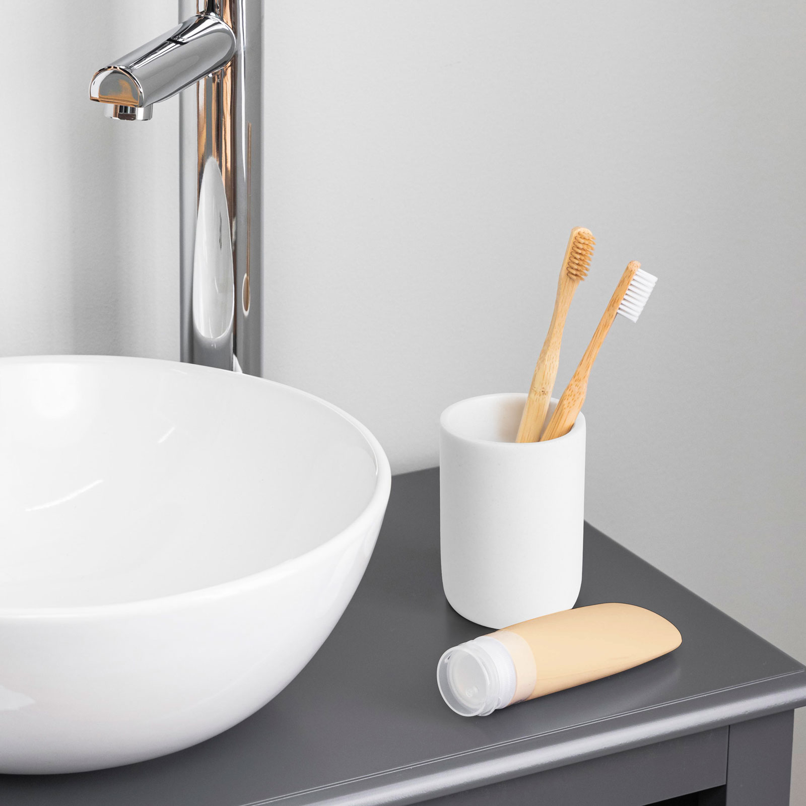 Alege o notă de eleganță simplă pentru baie cu această cană pentru baie alb mat. Designul cilindric și finisajul mat se potrivesc ușor lângă chiuvetă, pe raft sau în dulapul de baie. Realizată din rășină, cana este rezistentă, stabilă și se curăță rapid, fiind perfectă pentru organizarea zilnică.