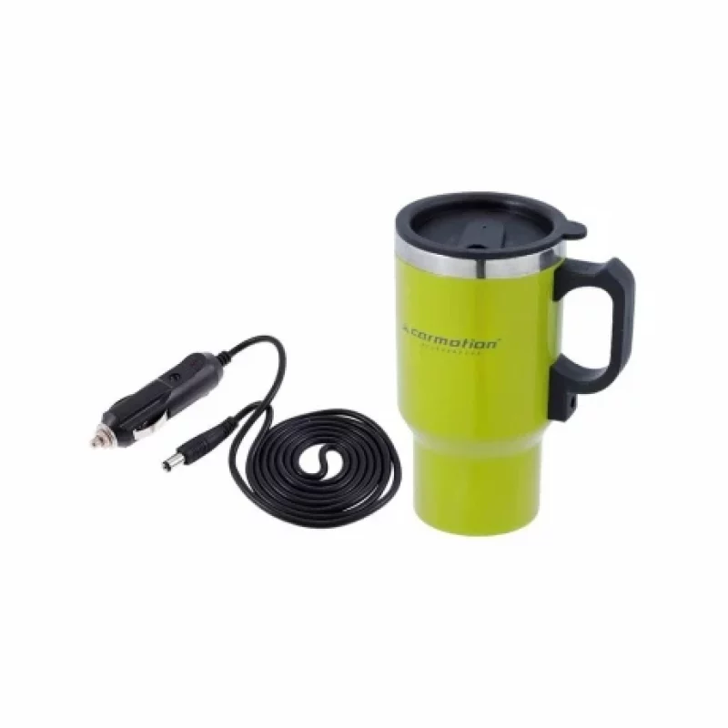 Alimentarea la bricheta auto 12V permite încălzirea băuturii până la aproximativ 60°C, iar forma îngustată a bazei se potrivește ușor în suportul pentru pahare al mașinii. Designul în culoare verde oferă un aspect modern și ușor de remarcat.