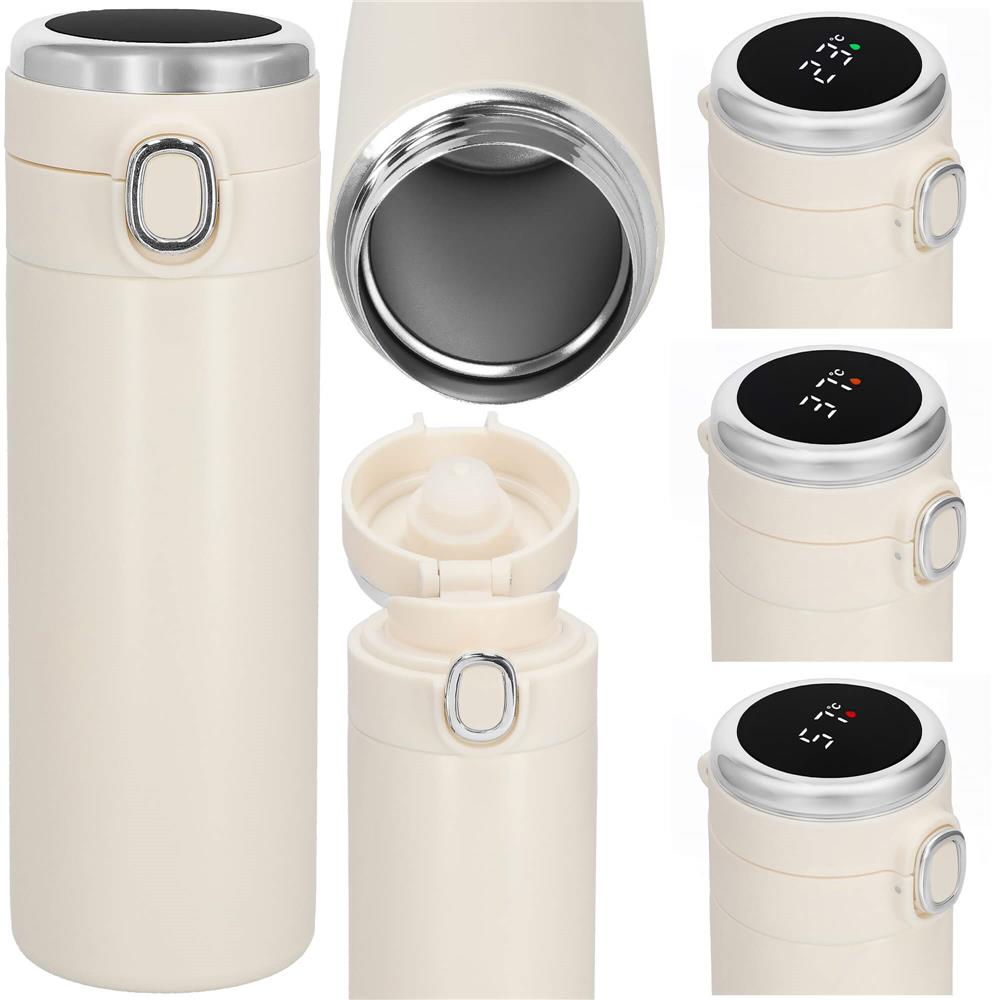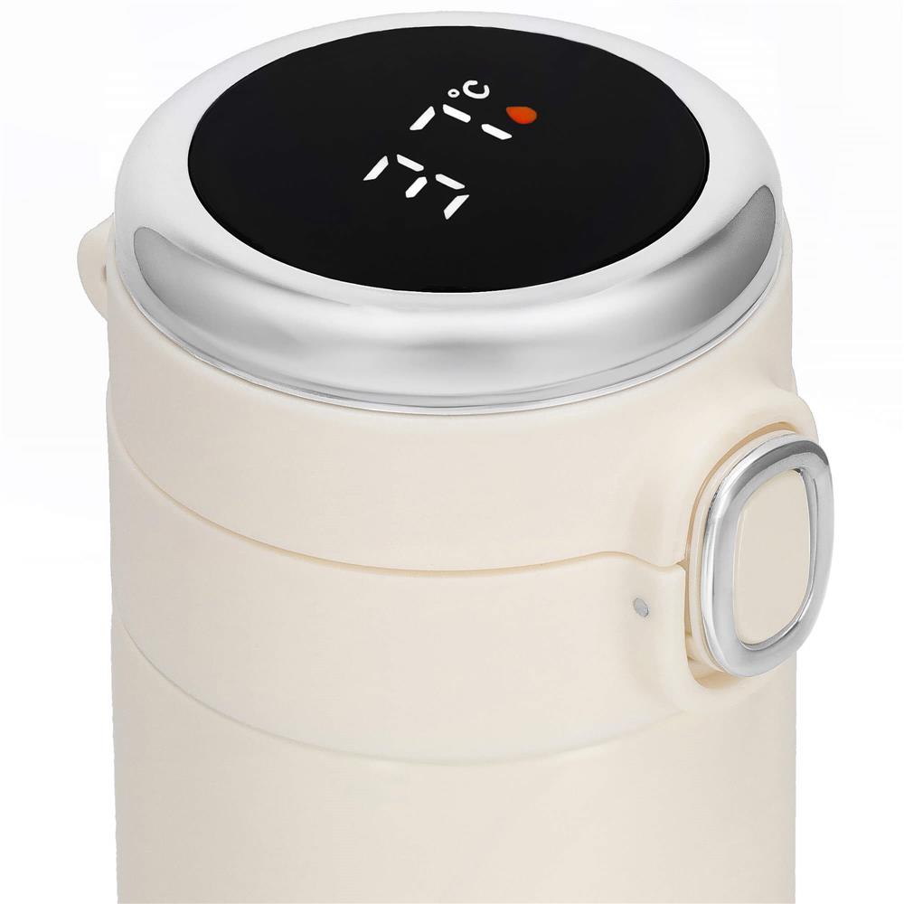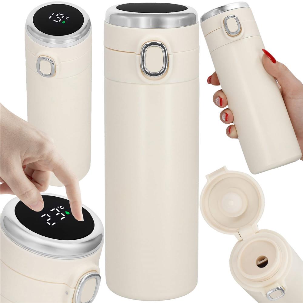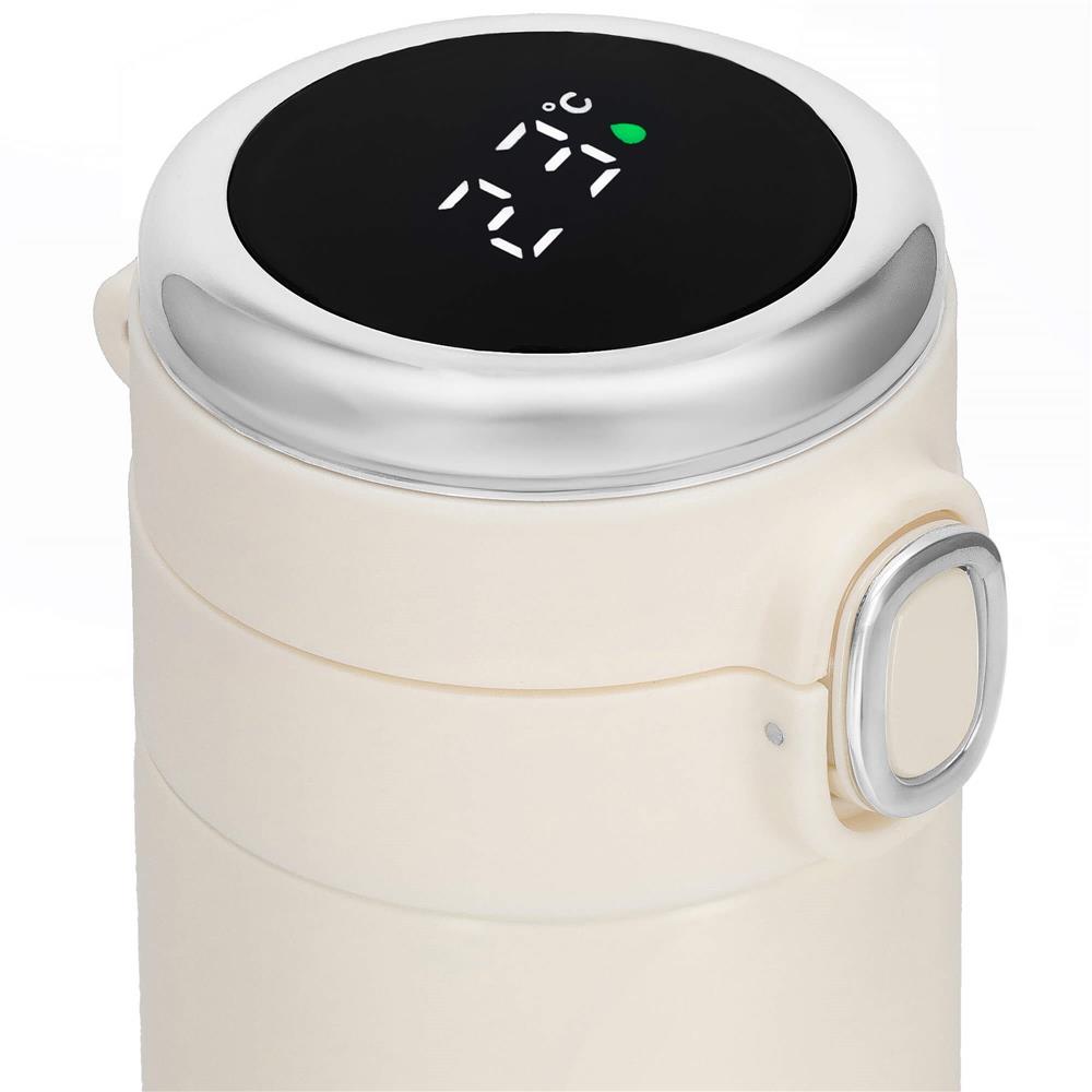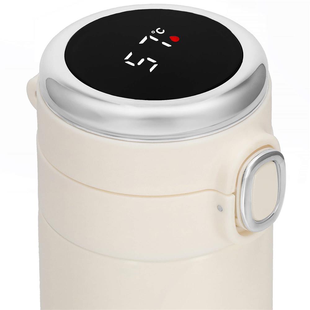 Cana termos Smart, inox, display LED, afisare temperatura, 420ml, 20cm, crem Household NewTrend