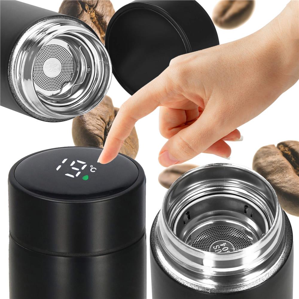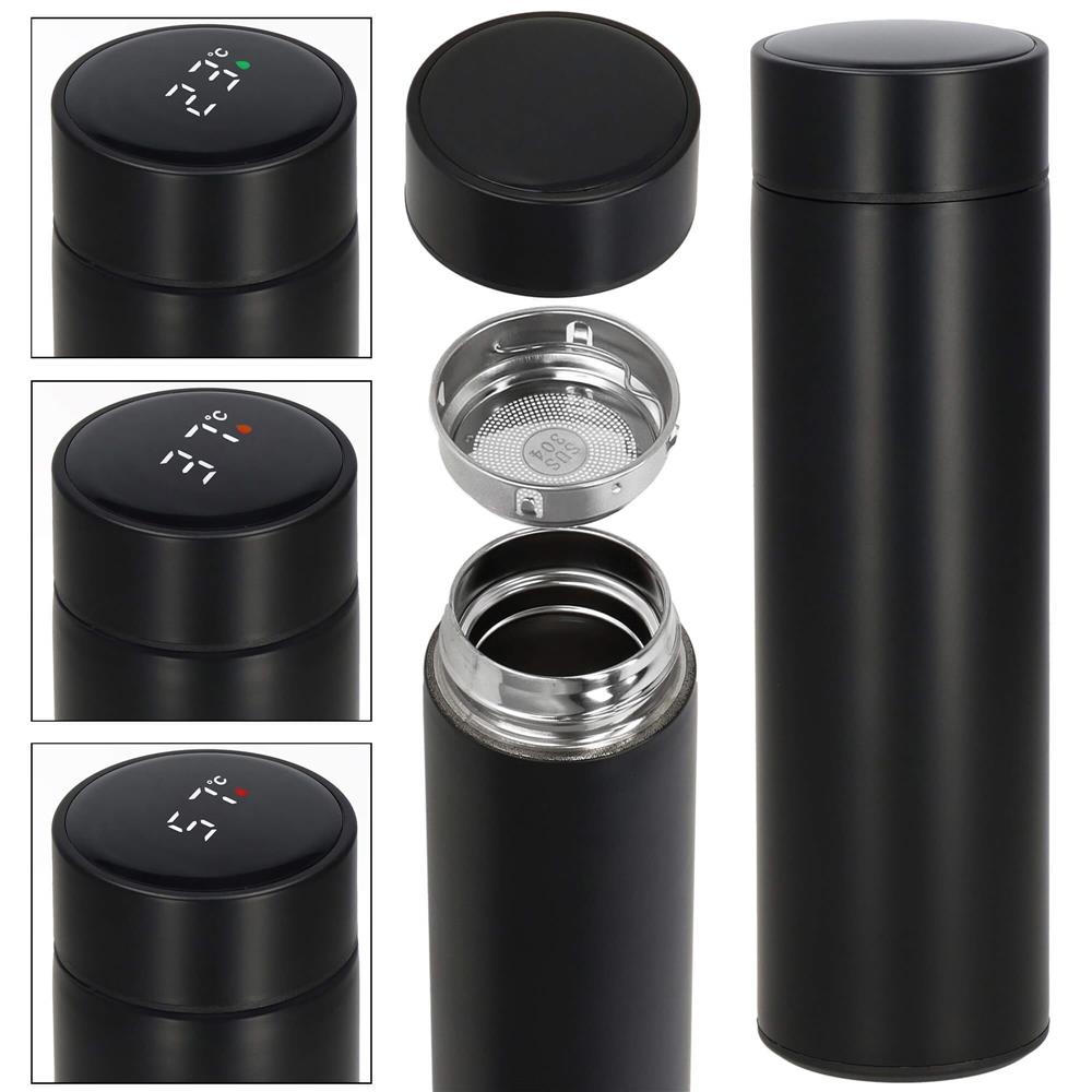 Cana termos Smart, inox, display LED, afisare temperatura, 500ml, 23cm, negru Household NewTrend