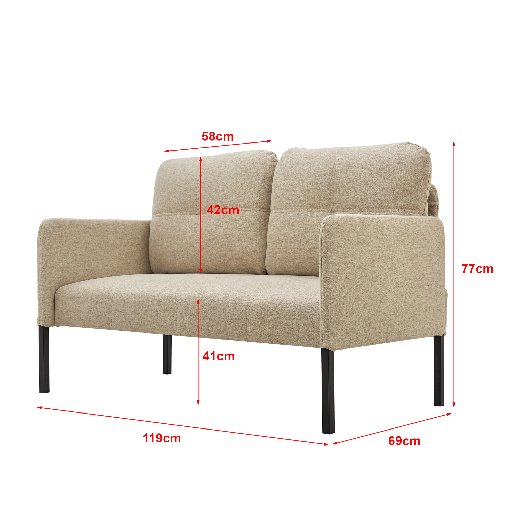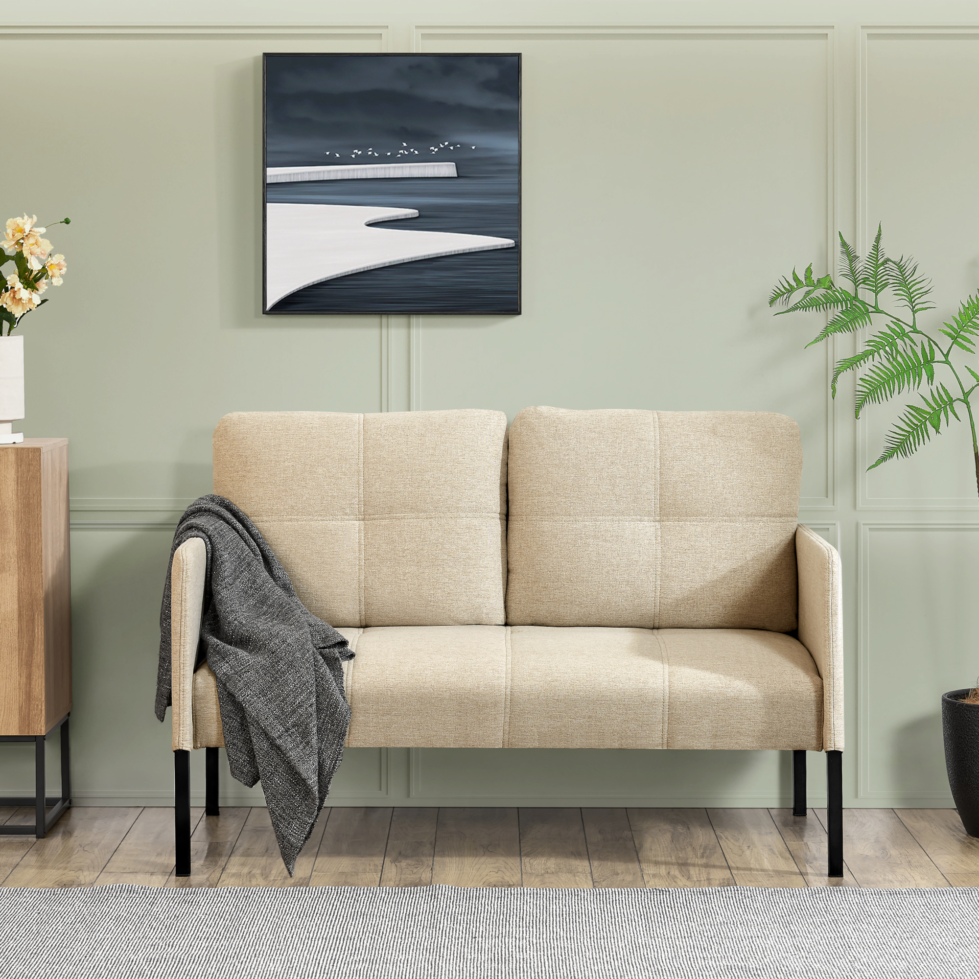 Canapea 2 locuri bej Reichling cu perne și picioare metalice