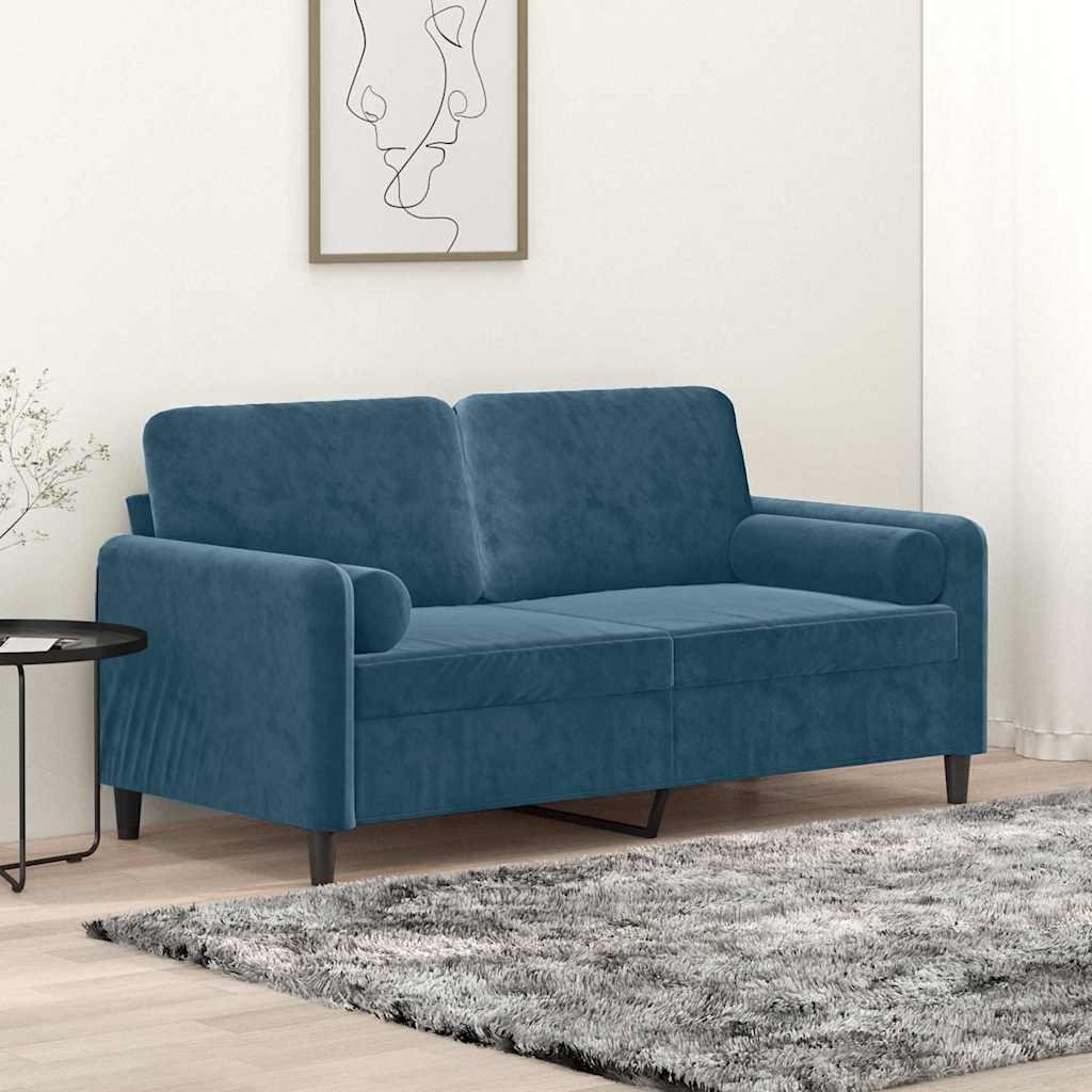 Canapea cu 2 locuri cu pernuțe, albastru, 140 cm, catifea GartenMobel Dekor