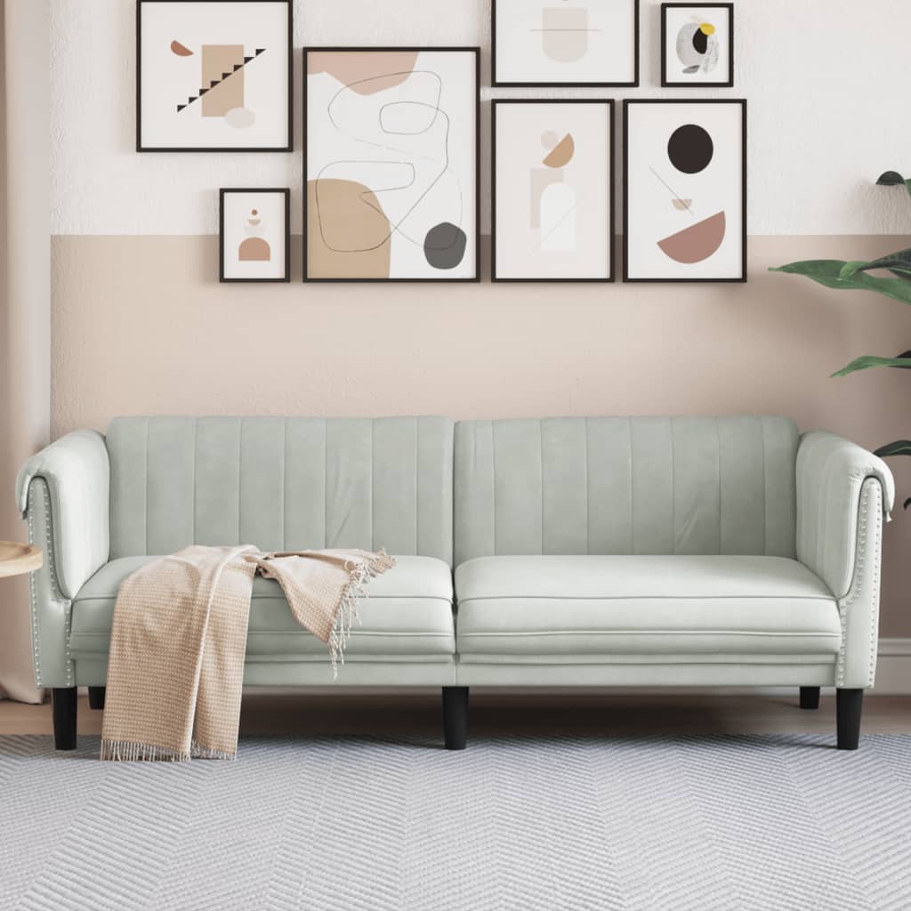 Canapea cu 3 locuri, gri deschis, material catifea GartenMobel Dekor