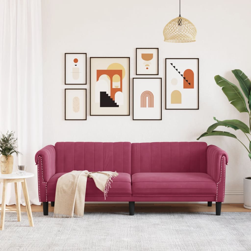 Canapea cu 3 locuri, roșu vin, material catifea GartenMobel Dekor