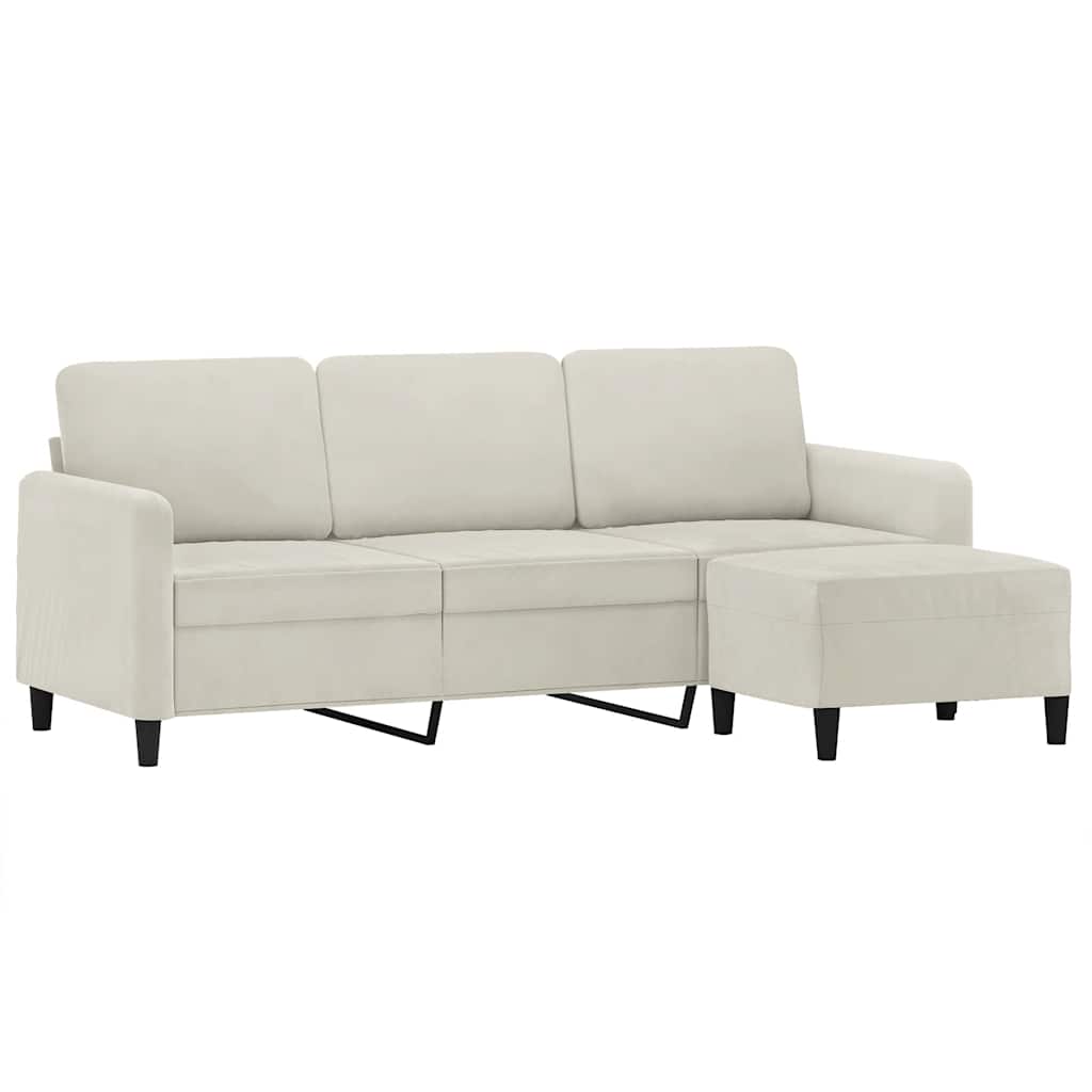 Canapea cu 3 locuri și taburet, crem, 180 cm, catifea GartenMobel Dekor