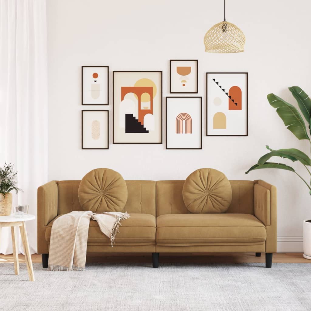 Canapea cu perne, 3 locuri, maro, catifea GartenMobel Dekor