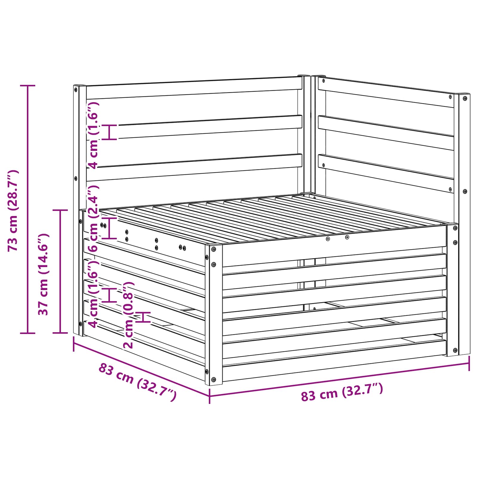 - Dimensiuni generale: 83 x 83 x 73 cm (L x l x î)
