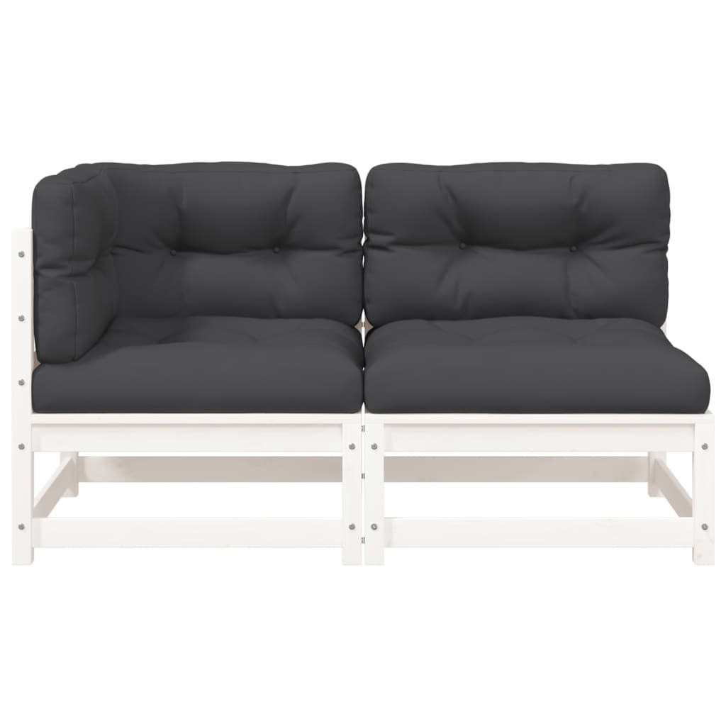 Canapea de grădină cu 2 locuri, cu perne, alb, lemn masiv pin GartenMobel Dekor