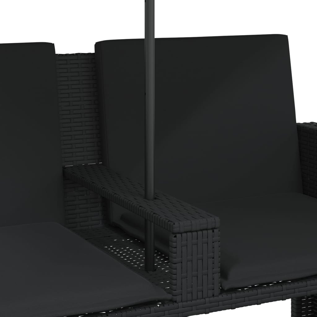 Canapea de grădină cu 2 locuri/umbrelă/taburete negru poliratan GartenMobel Dekor