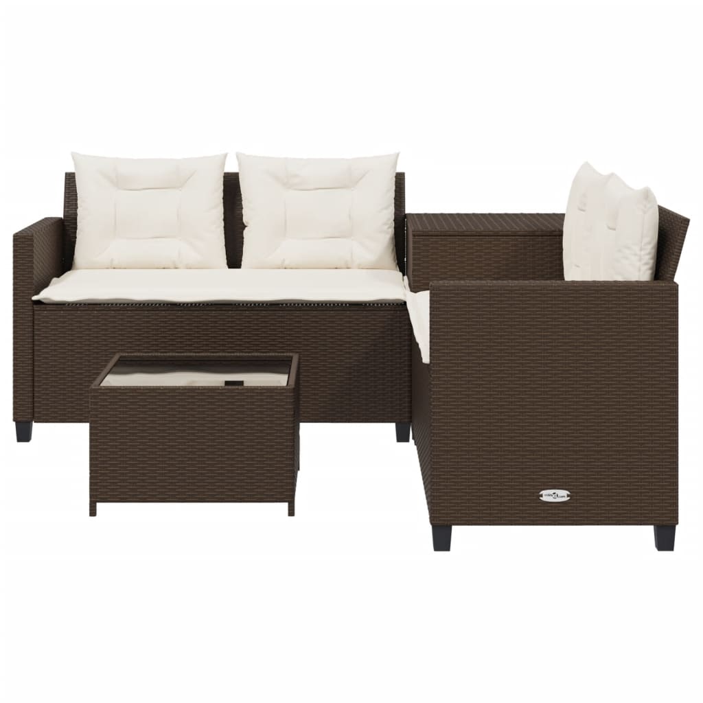 Canapea de grădină cu masă/perne, formă de L, poliratan maro GartenMobel Dekor