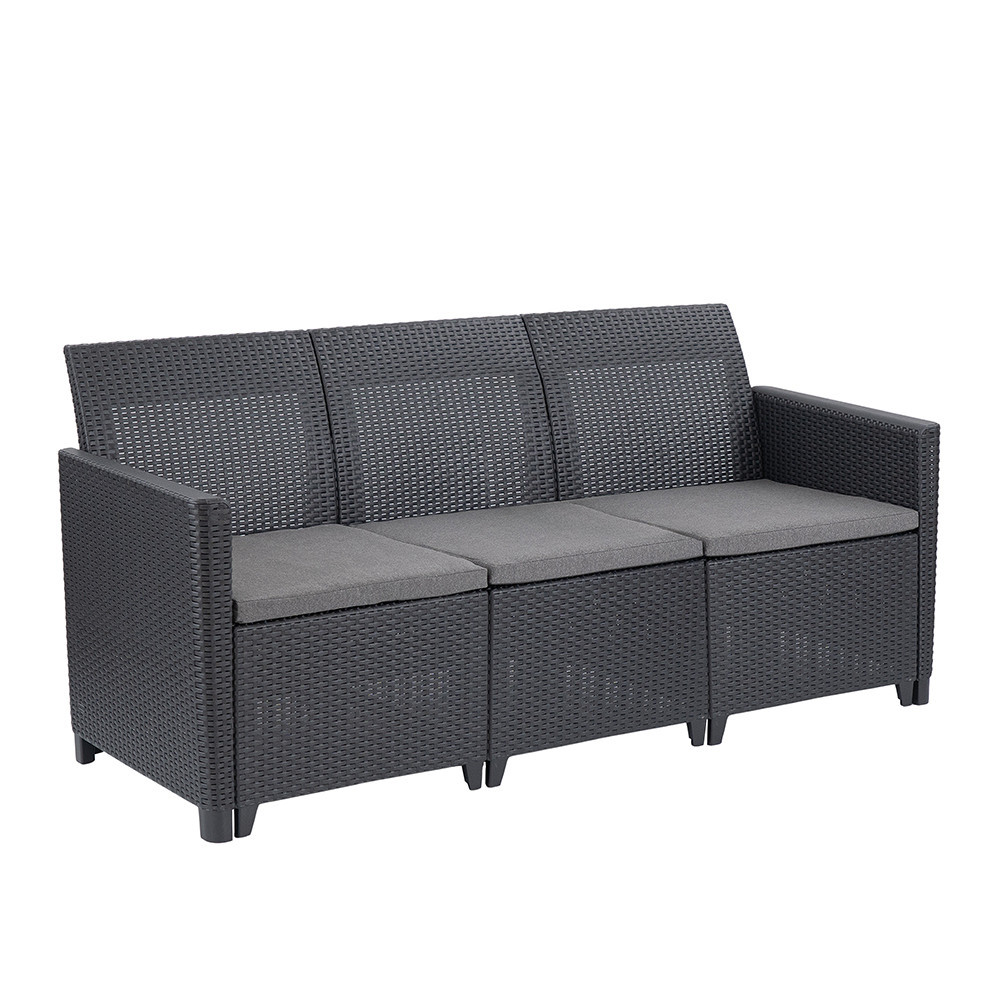 Canapea de grădină Curver Claire, 3 locuri, ratan sintetic, grafit, 163 cm