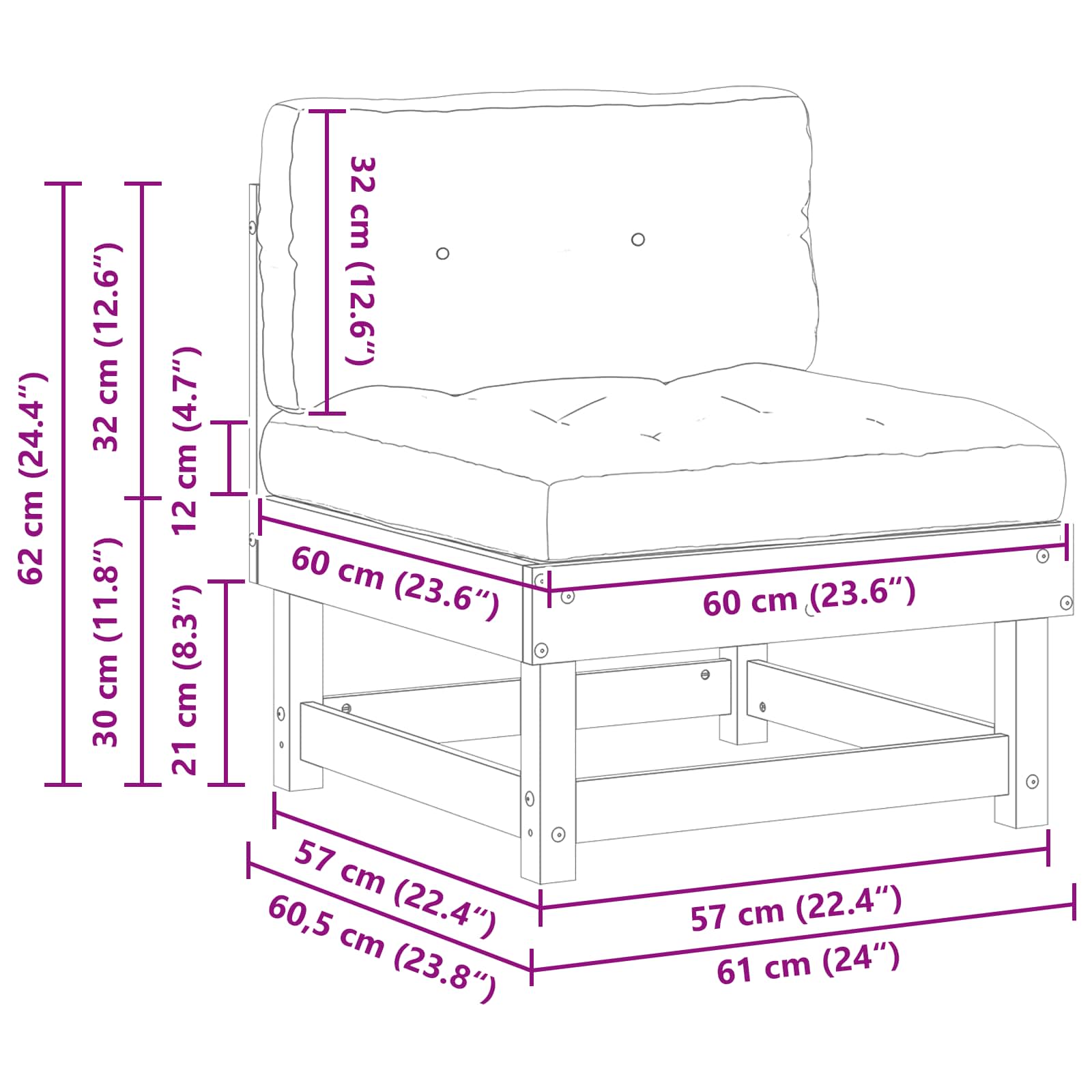 - 1 x Perna de șezut:60 x 60 x 12 cm(L x l x î)