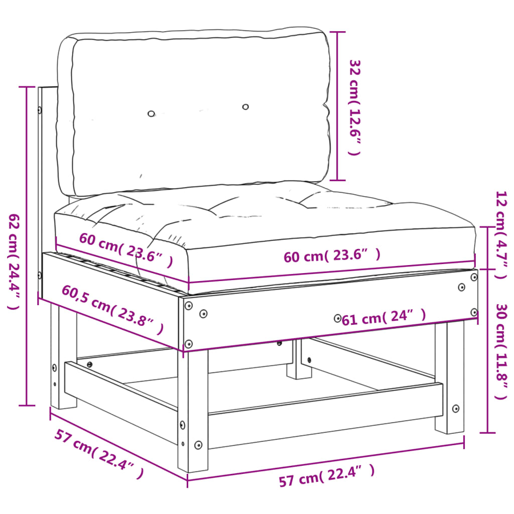 Canapea de mijloc cu perne, lemn de pin tratat GartenMobel Dekor
