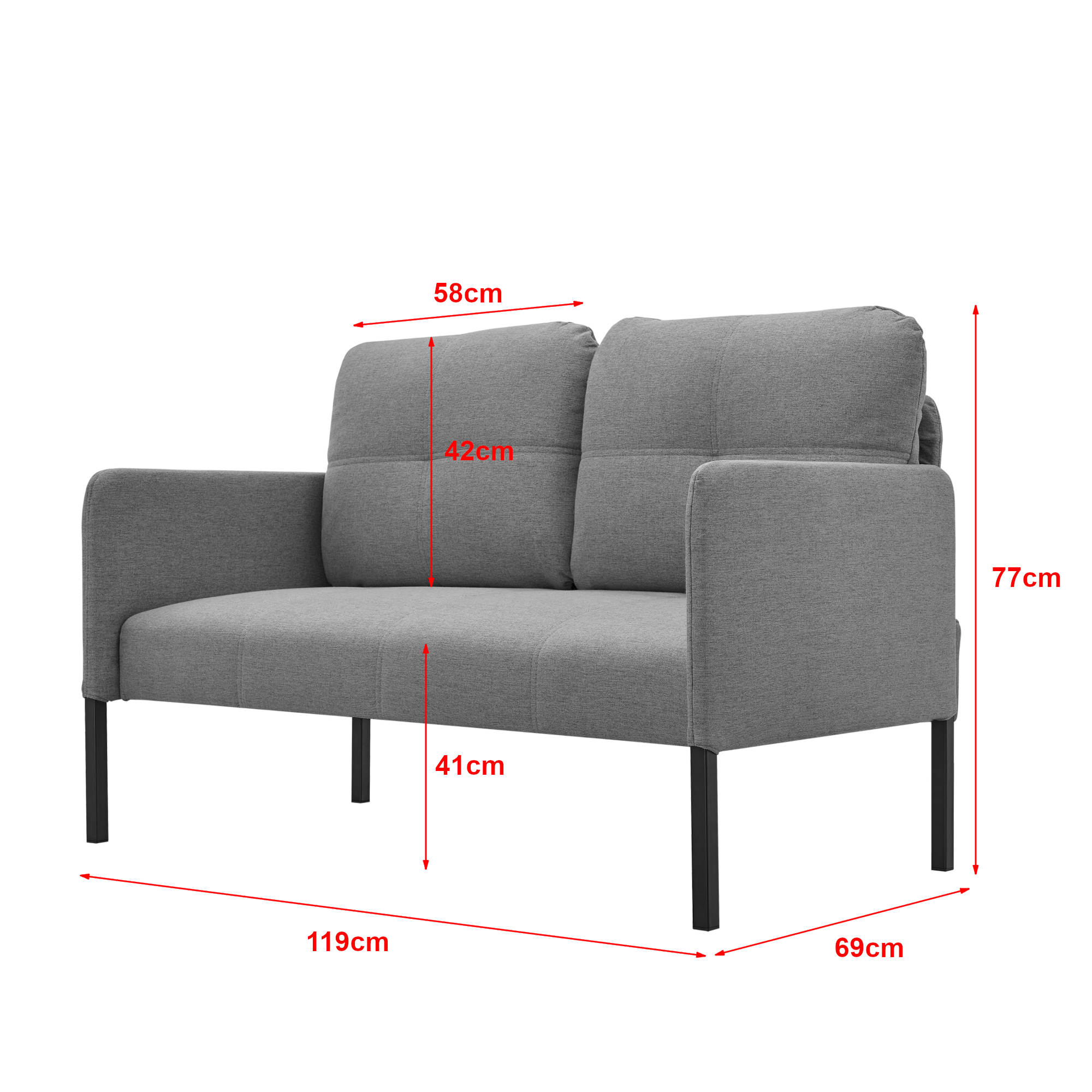 Canapea, en.casa, PXAT-1256 Reichling, 77 x 119 x 69 cm, placaj, lemn, poliester, poliuretan, metal, gri, cu 2 locuri HausGarden Leisure
