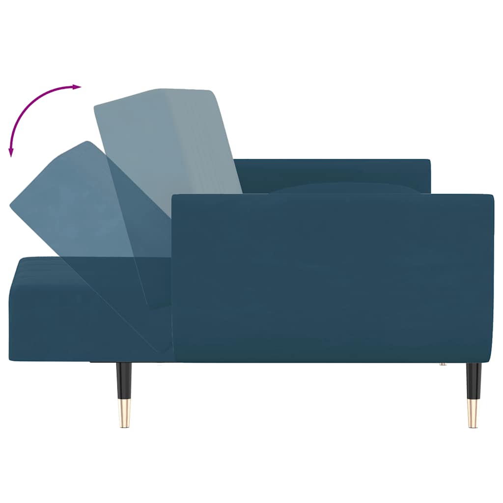 Canapea extensibilă cu 2 locuri, 2 perne, albastru, catifea GartenMobel Dekor