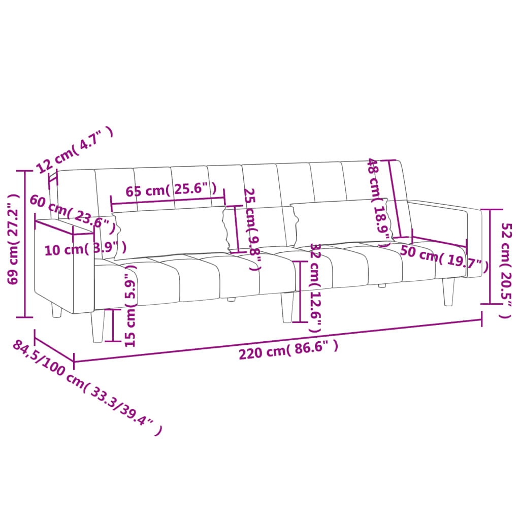 Specificatii Canapea extensibilă 2 locuri, 2 perne,